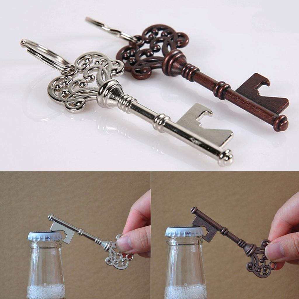 Vintage Key-Shaped Metal Bottle Opener with Keychain Accessory