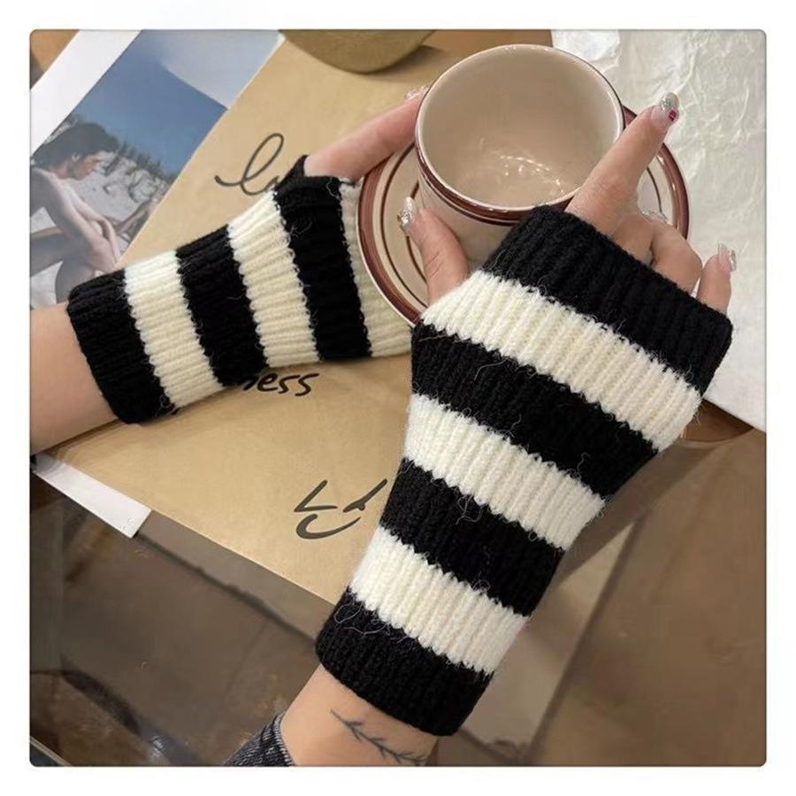 Короткие цветные перчатки в толстую полоску, шерстяные рукава для женщин, осенне-зимние вязаные теплые и непродуваемые рукава без пальцев, напульсники, накладные рукава