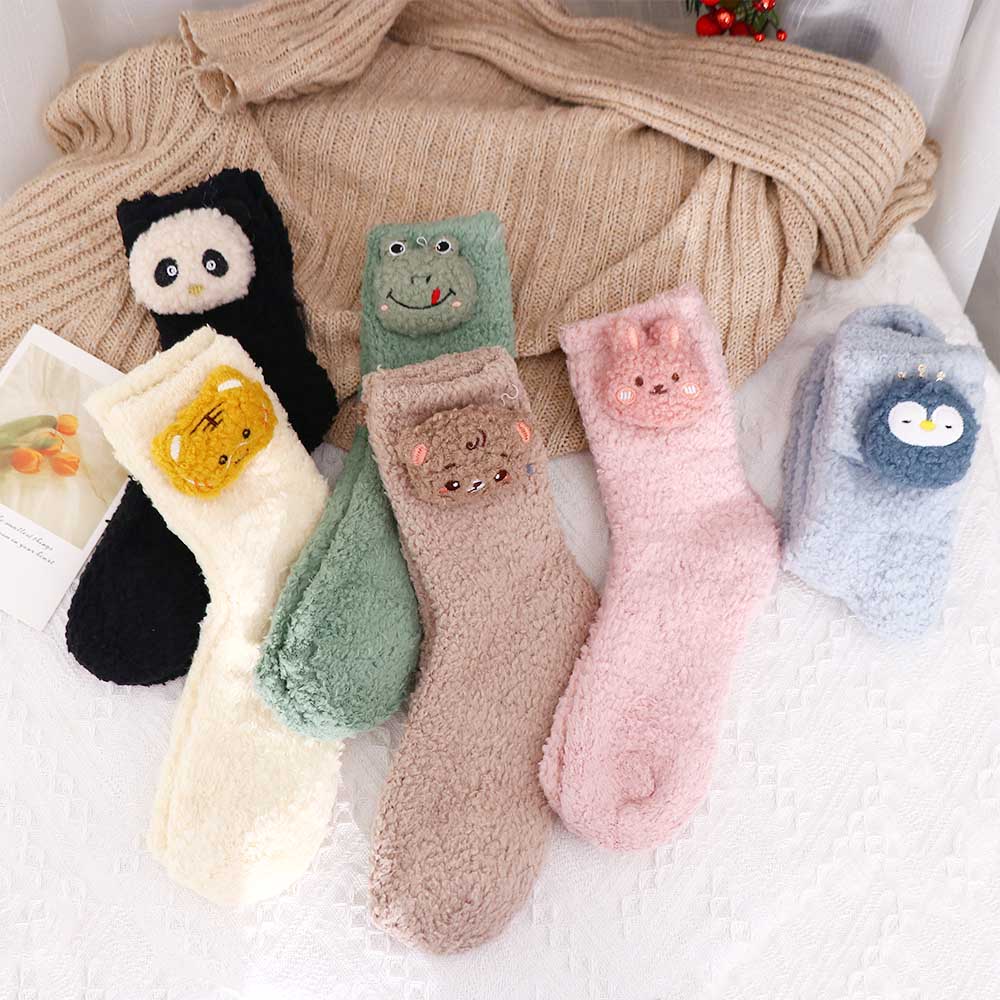 Пингвин Средняя трубка Мультяшные носки из кораллового флиса Носки женские Лягушка Носки-тапочки