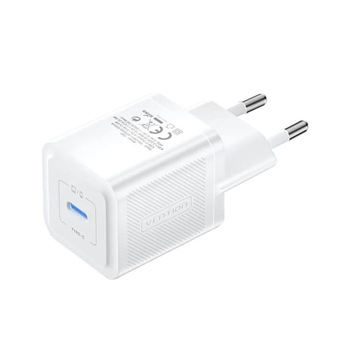 Chargeur pour prise UE, GaN, 20W, Type-C, Smart Charging - Vention (FEPWW0-EU) - Blanc