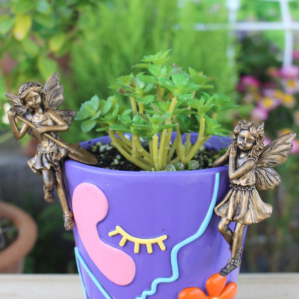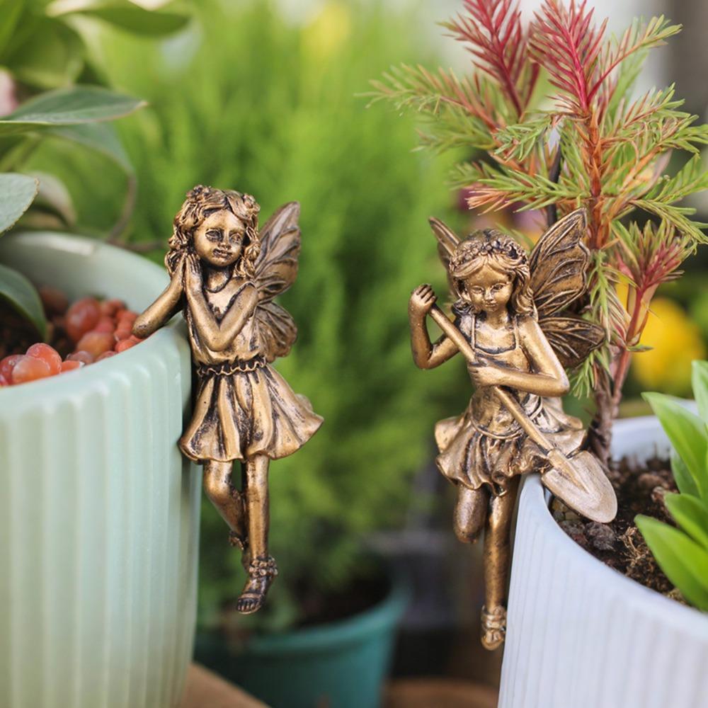 Набор фигурок феи с цветком из имитации меди, подвесные украшения-феи для офиса, уличный декор для растений