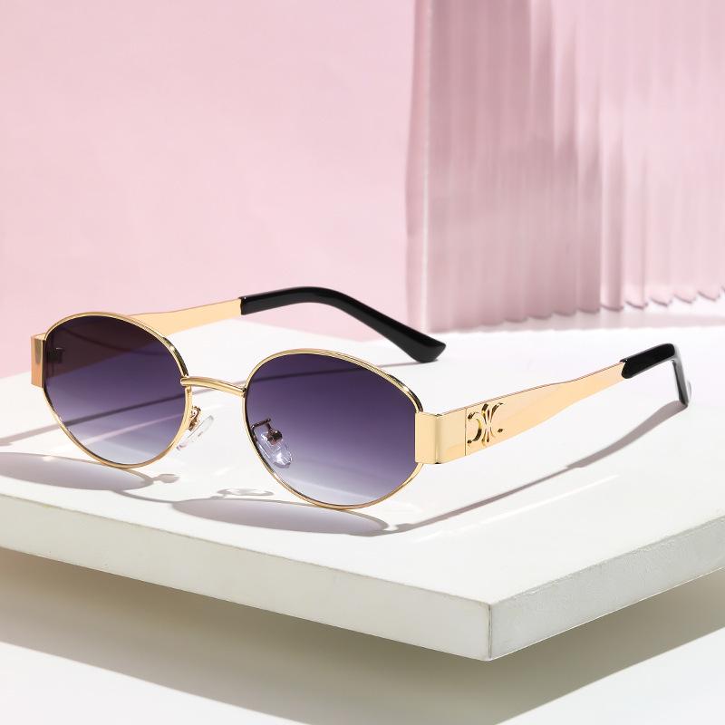 Женские ретро-солнцезащитные очки овальной формы в металлической золотой оправе для узких лиц, в французском стиле — купить товар онлайн с бесплатной доставкой по всему миру!