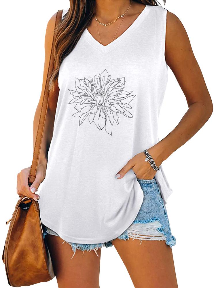 Женская модная майка без рукавов с V-образным вырезом и принтом, летний повседневный пуловер, свободная майка