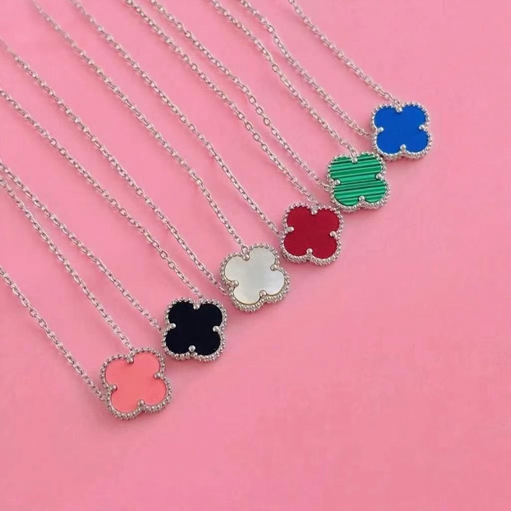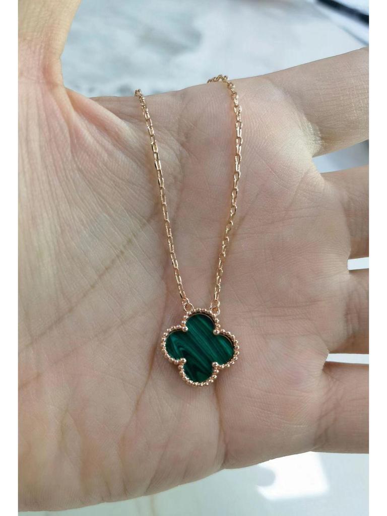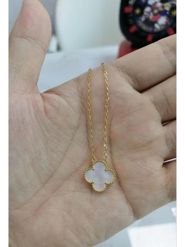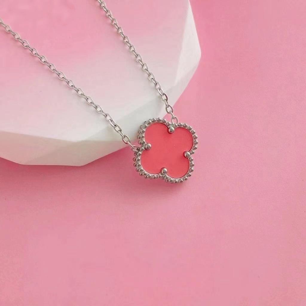 Ожерелье из позолоченного 18-каратным золотом четырехлистного клевера с подвеской из халцедона цвета розовой розы, агата и белой раковины для женщин