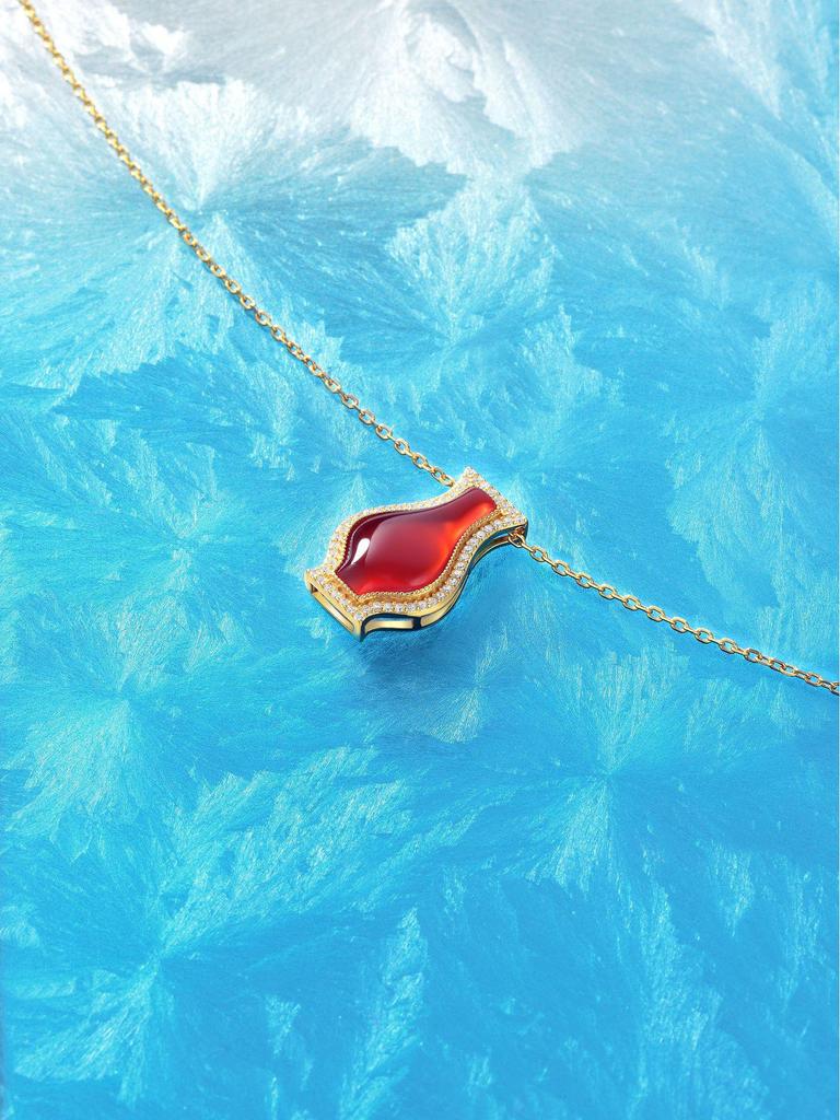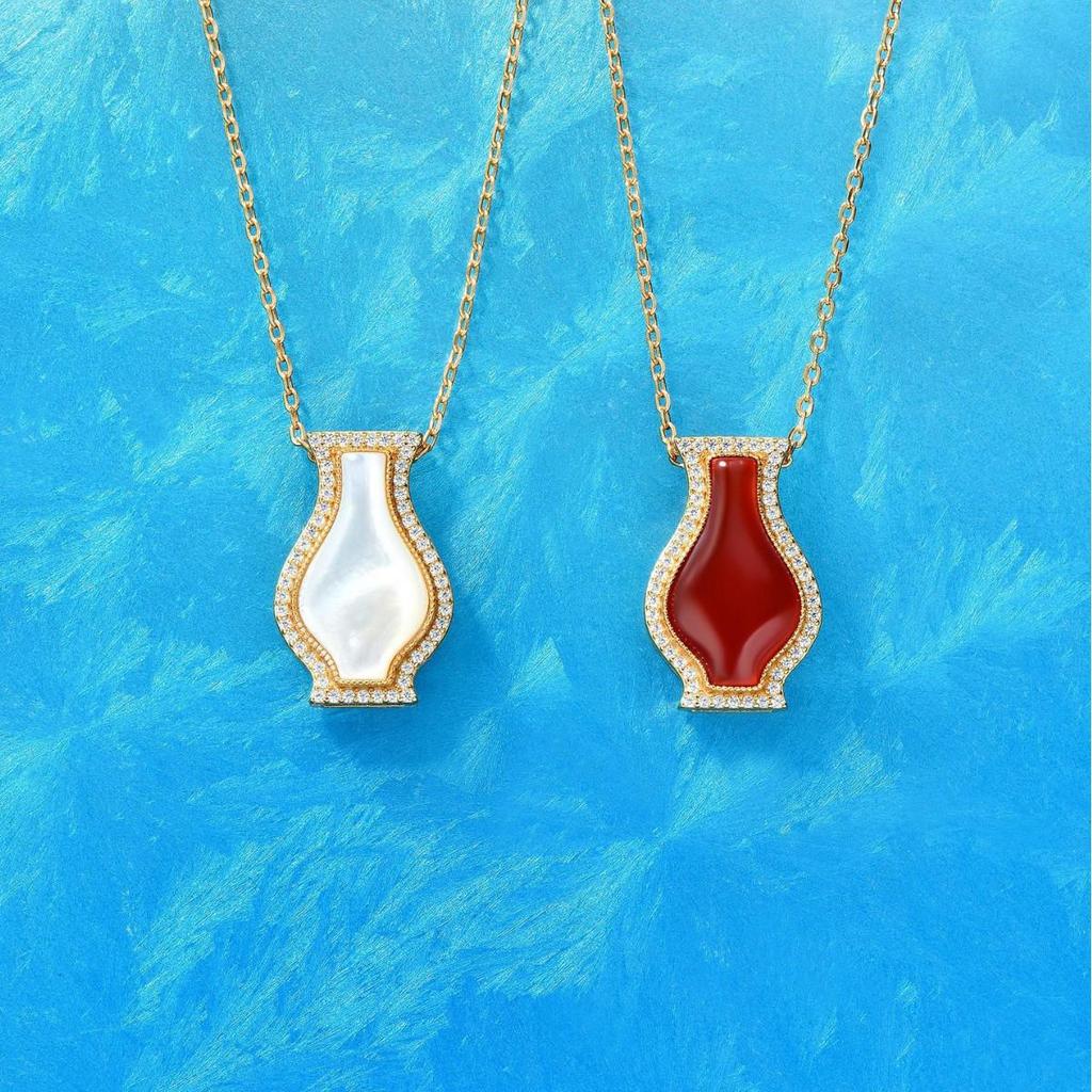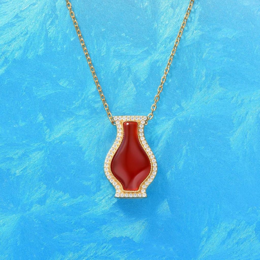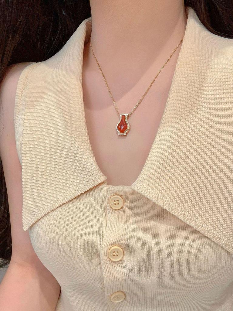 Элегантное серебряное (925 пробы) колье-тыква с красным агатом и перламутром для женщин - Цепочка на ключицы в стиле легкой роскоши
