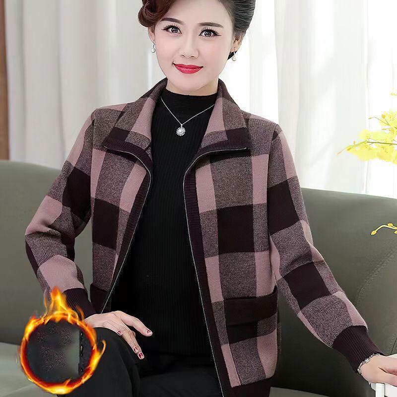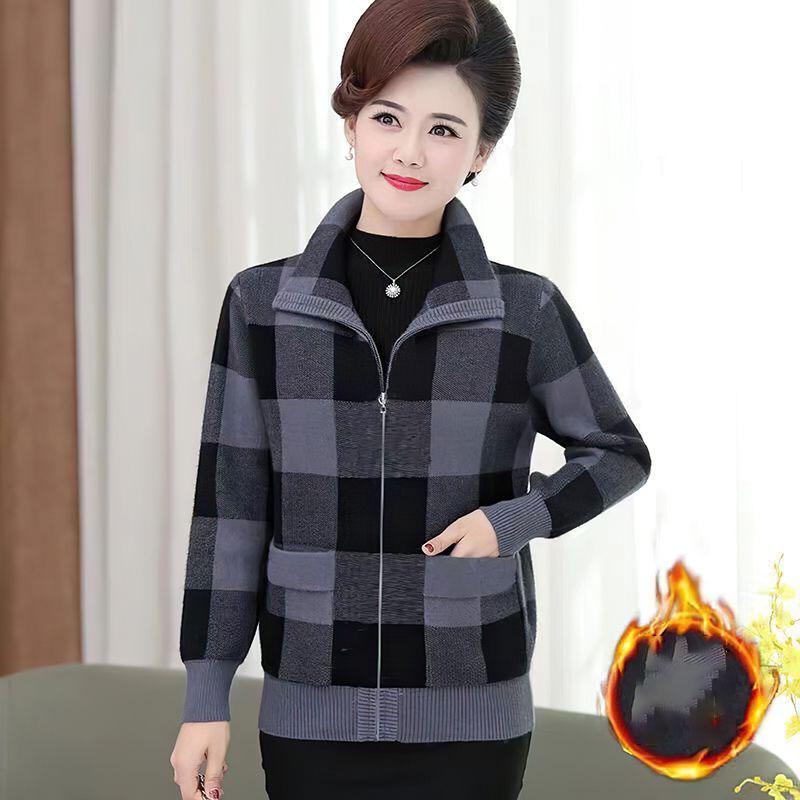 Женская одежда Осень Зима Бархатное утепленное пальто Клетчатая женская короткая куртка Стиль Свободный Большого размера Пальто