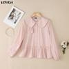 VONDA Женская повседневная блузка с кукольным воротником, свободного кроя, с длинным рукавом, на пуговицах, с оборками