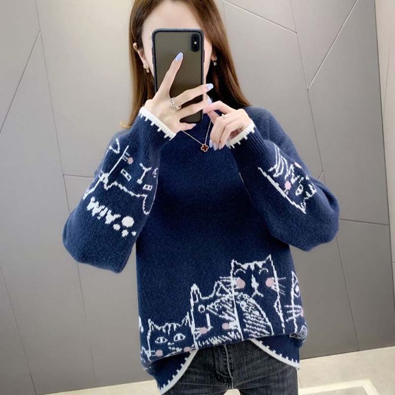 Свитер для женщин Осень Зима Утепленный Теплый Вязаный Эластичный С длинным рукавом Топы