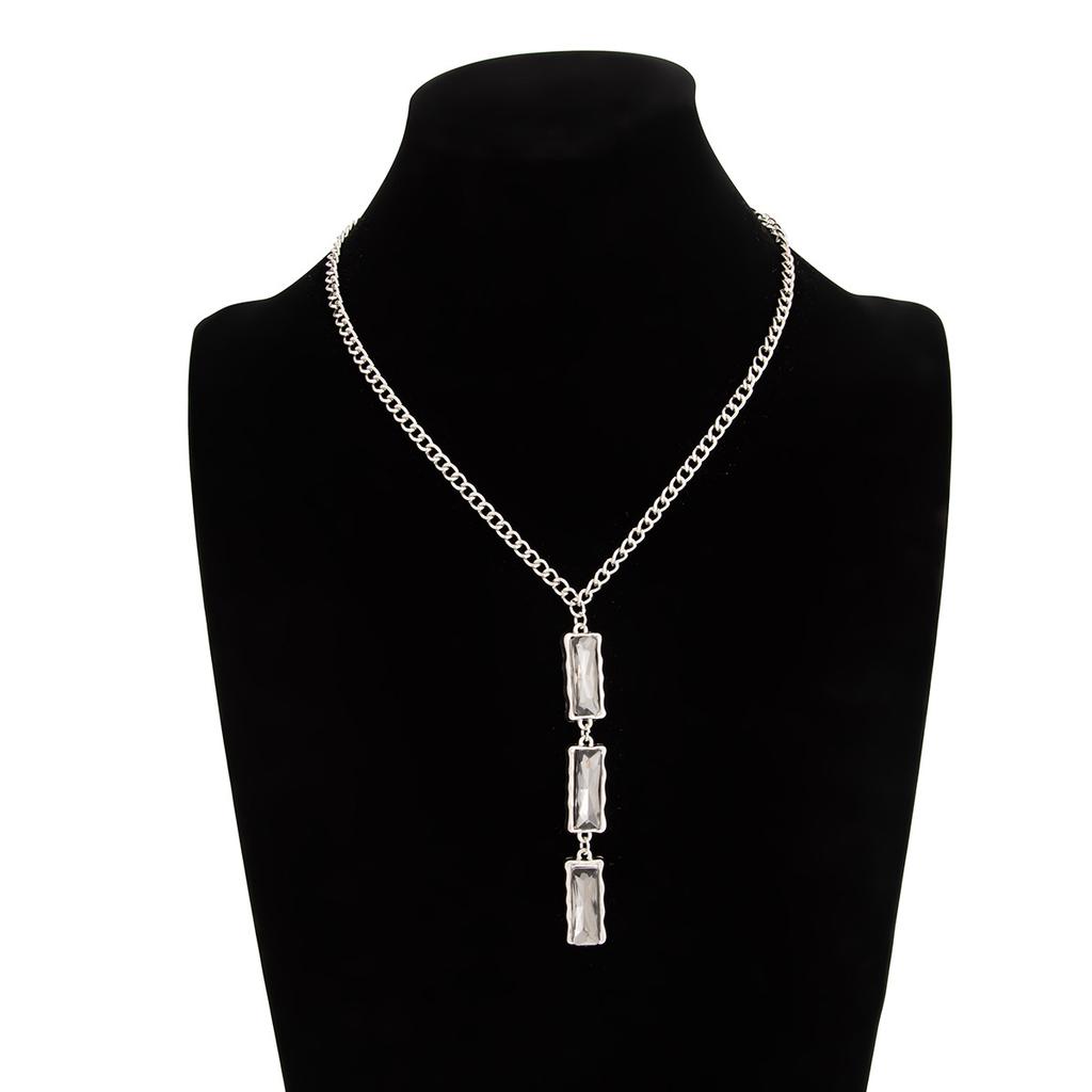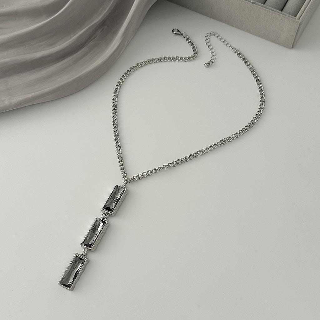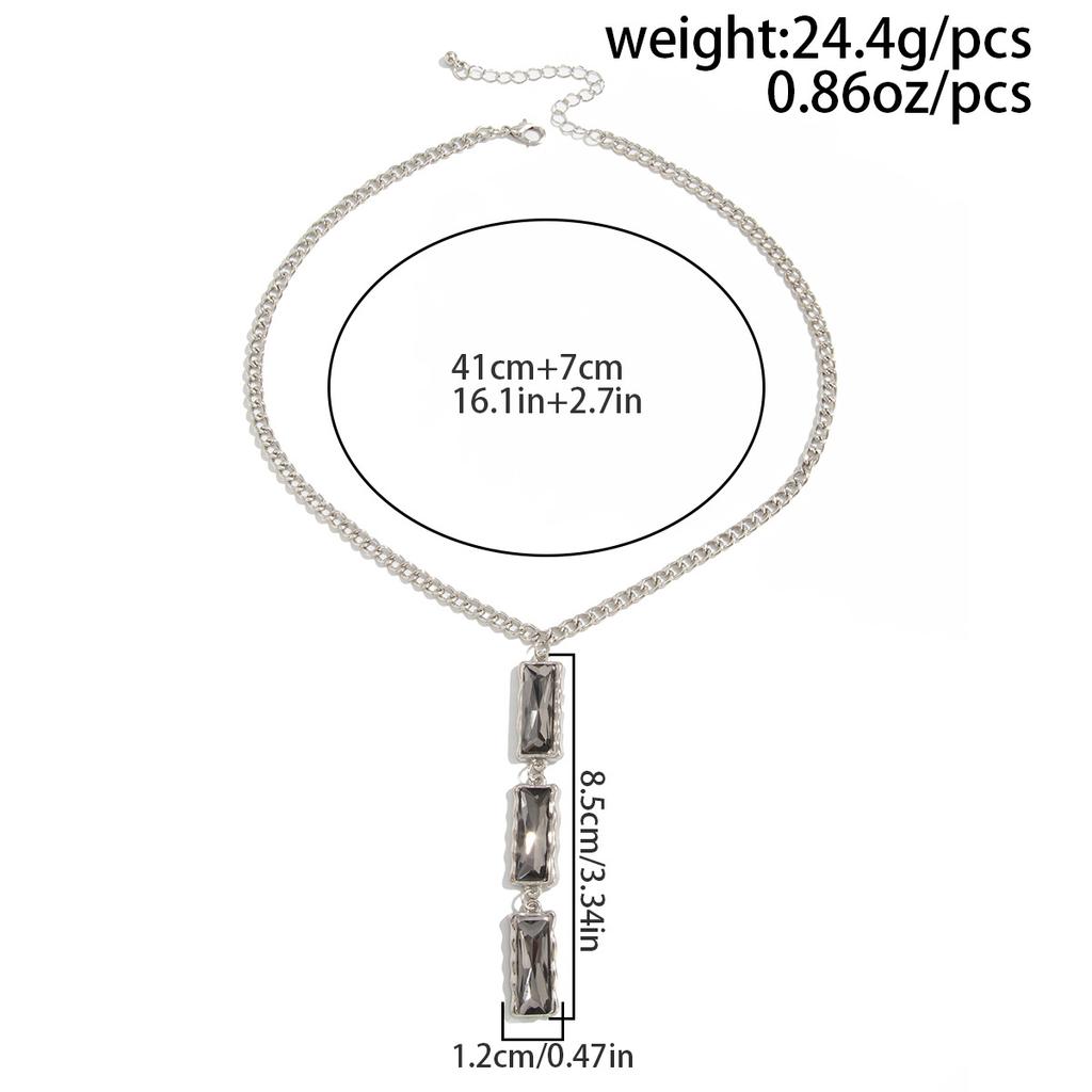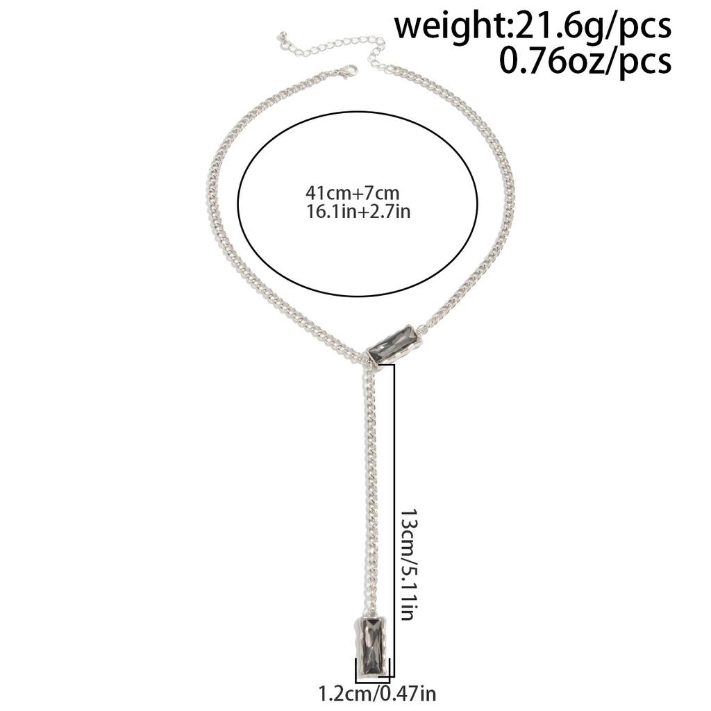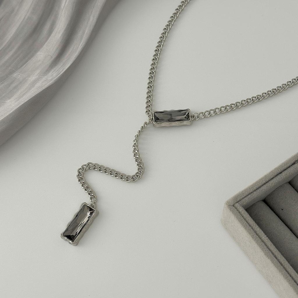 Минималистичное колье-чокер с квадратной подвеской из черного бриллианта холодных тонов - Стильное эффектное длинное ожерелье для женщин, изящная металлическая цепочка, не тускнеет