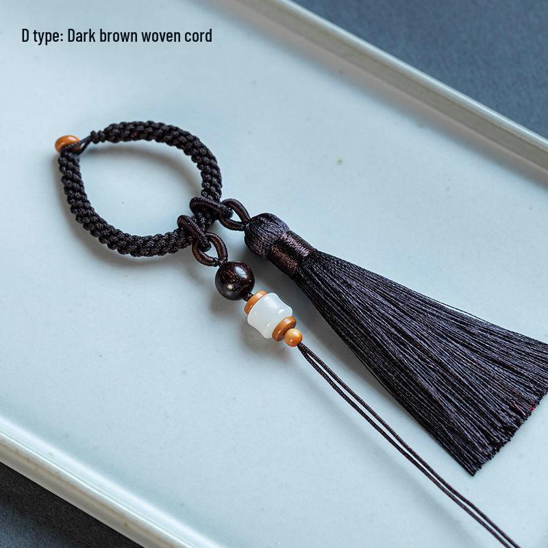 Двухцветный плетеный брелок с нефритовой пряжкой и кисточкой