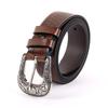 Ретро кожаный ремень в западном стиле с резной металлической пряжкой и тисненым дизайном