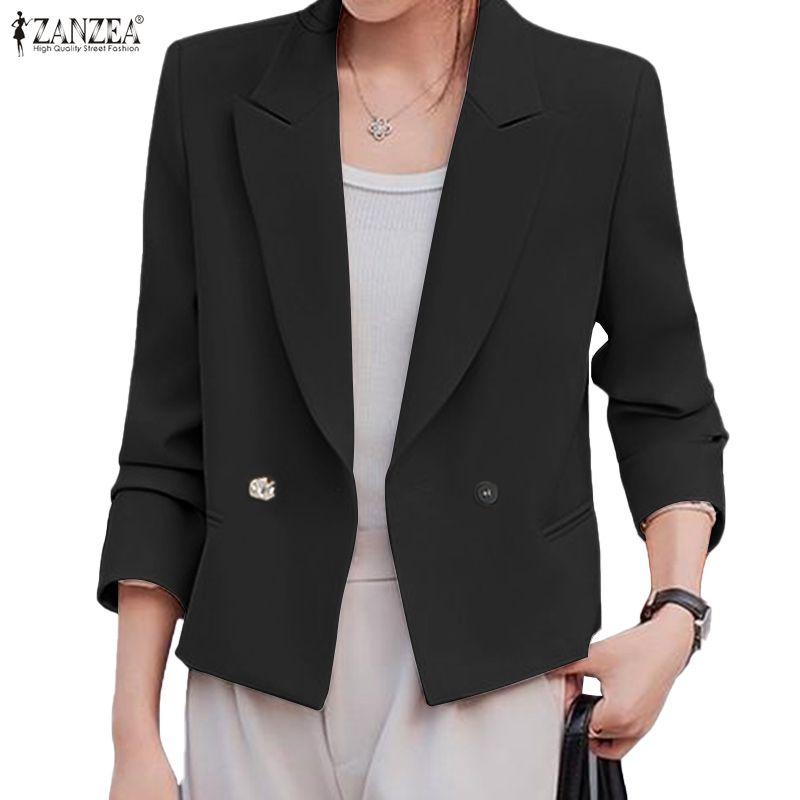 ZANZEA Женские повседневные кардиганы с лацканами с разрезами, с длинными рукавами, свободные, тонкие