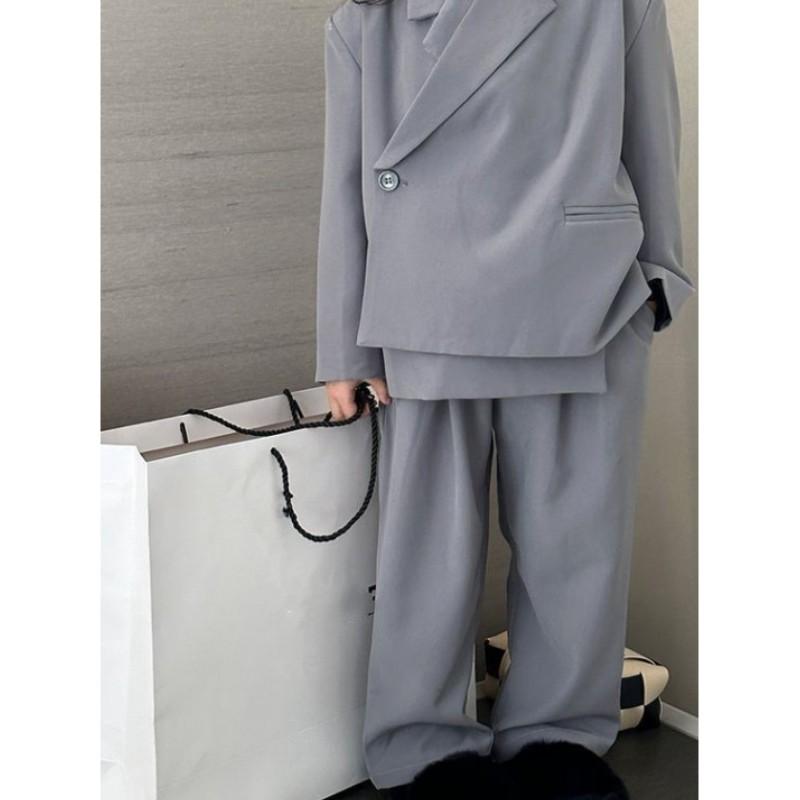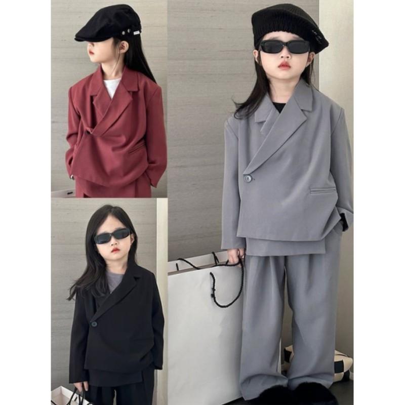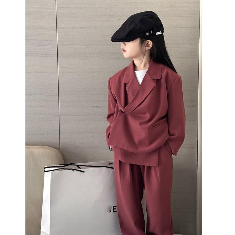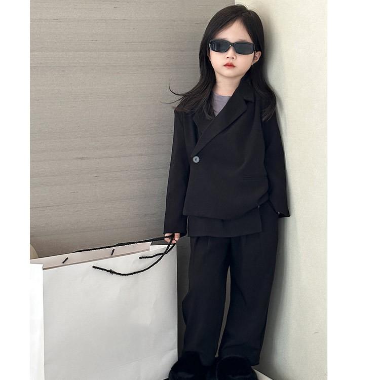 Дизайн детского весенне-осеннего костюма: Топ свободного кроя с асимметричной планкой + Брюки от костюма, комплект из двух предметов