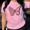 Женская летняя футболка с принтом бабочки - Модный топ с коротким рукавом