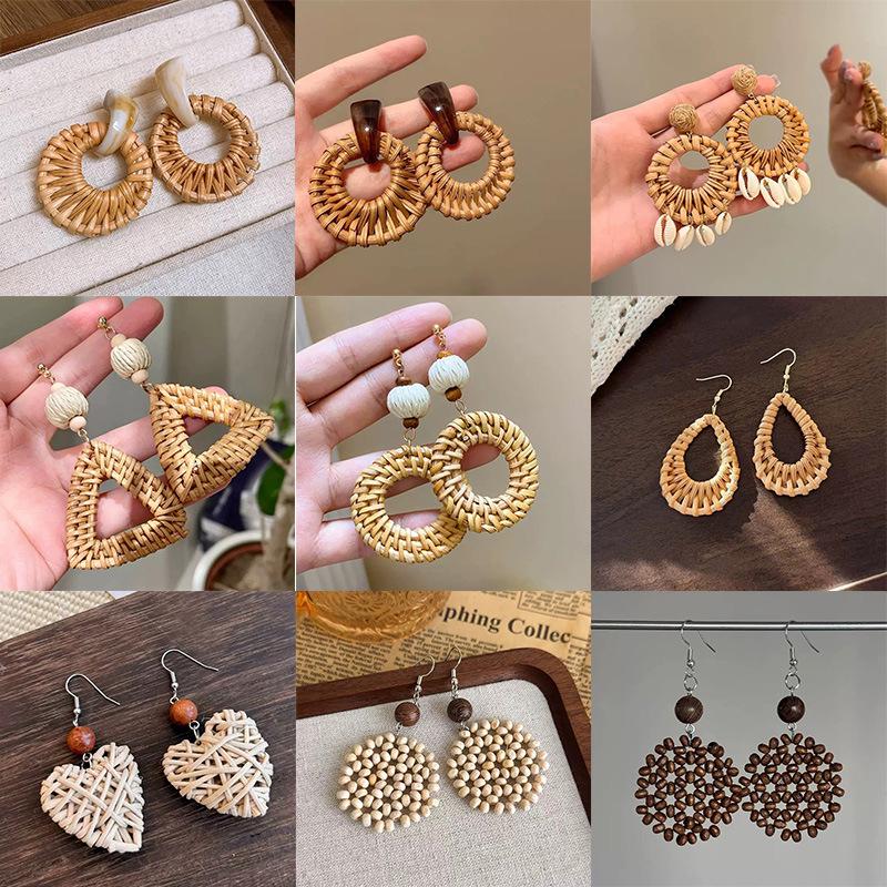 Богемные серьги-кисточки из бамбука, ротанга и ракушек для женщин
