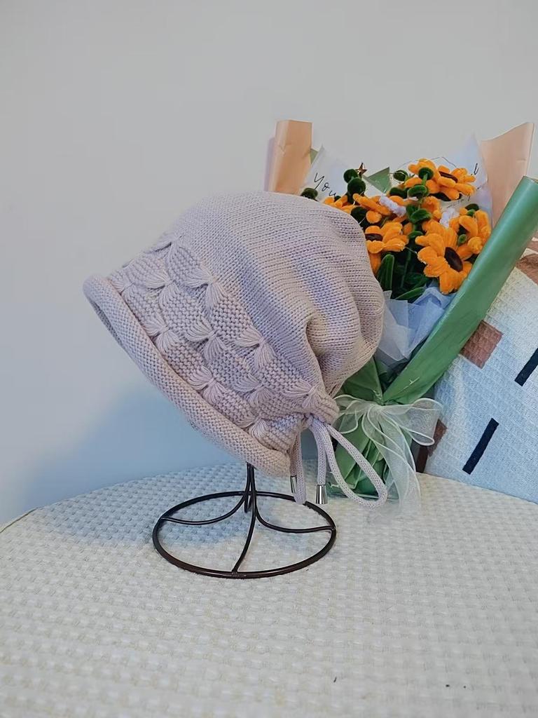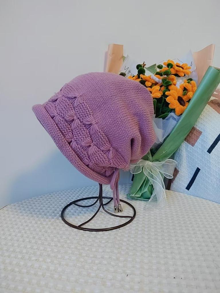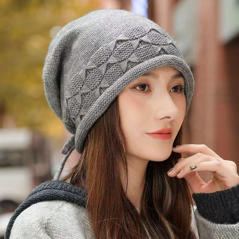 Женская шапка-бини с отворотом для большой головы, с защитой ушей и кулиской - Универсальная теплая вязаная шапка для маленьких лиц на осень и зиму