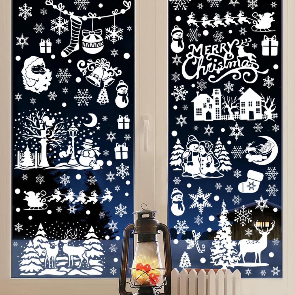 Рождественские украшения Украшение для праздничной вечеринки Наклейки на окна ПВХ Статические наклейки Украшения для окон