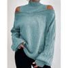 Женский свободный зимний свитер с открытыми плечами и полувысоким воротником Вязаный свитер женский