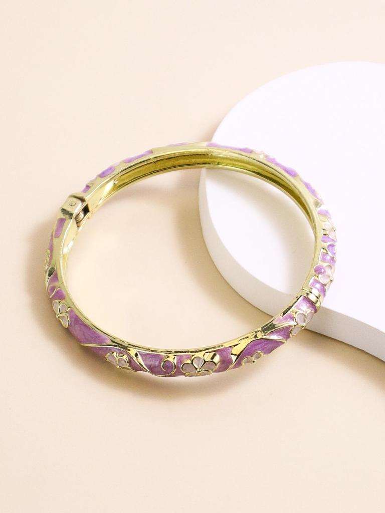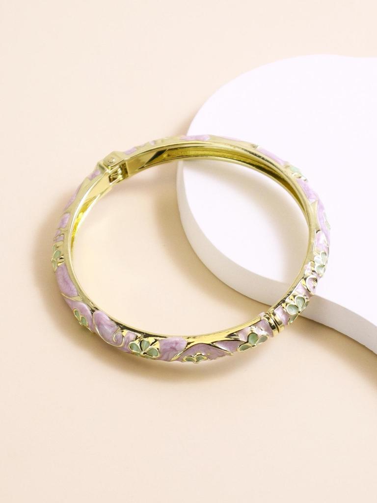 Эмалированный браслет-бенгл с цветочным узором и стразами - Европейский и американский бестселлер