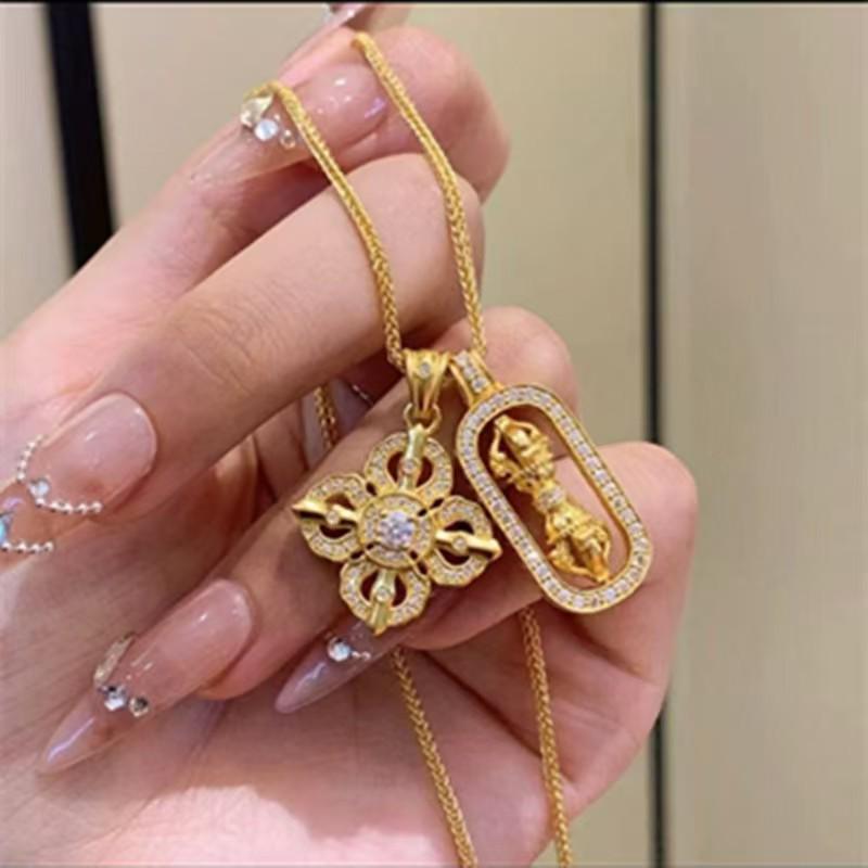 Золотая подвеска Ваджра для женщин с бриллиантовыми акцентами и дизайном креста - стиль Douyin