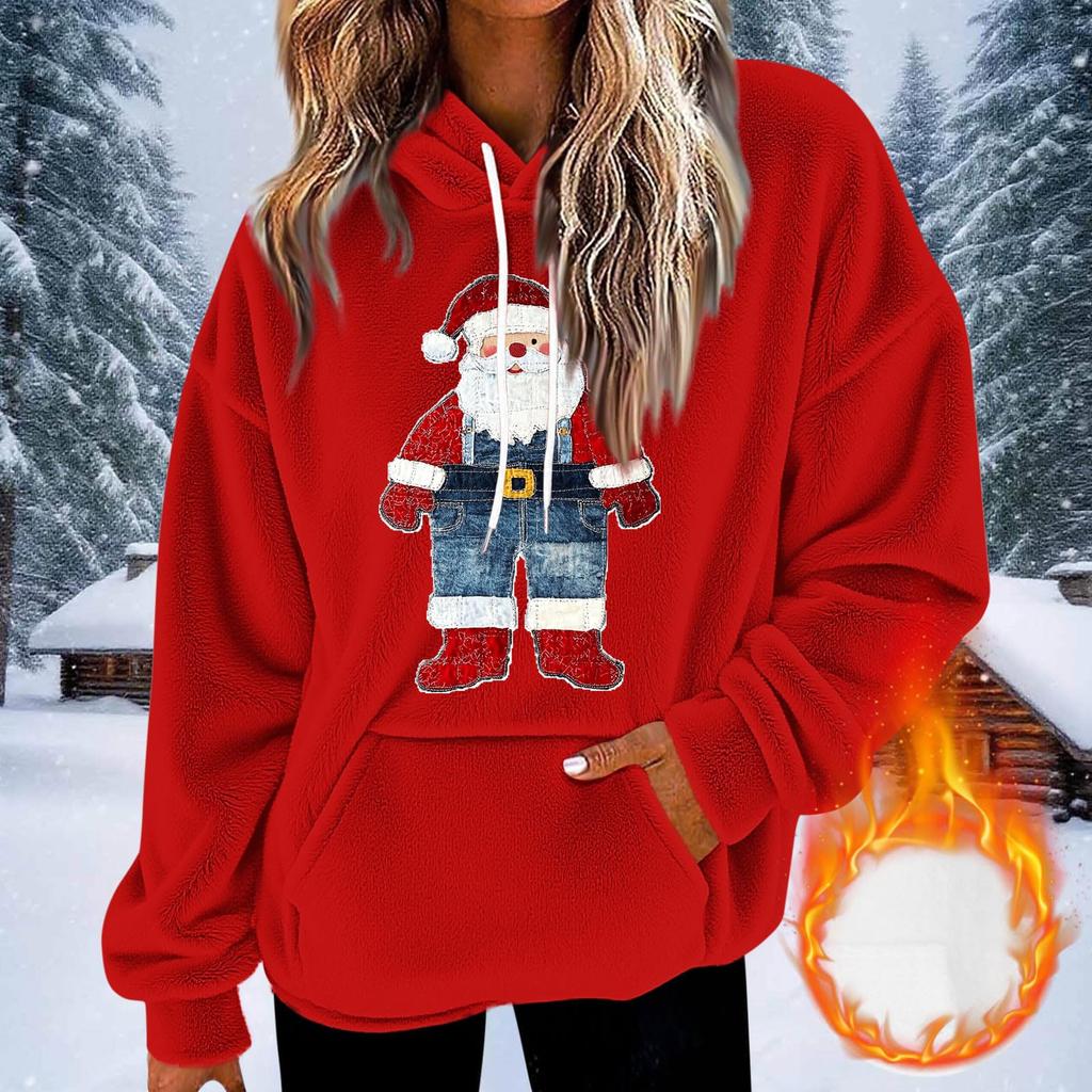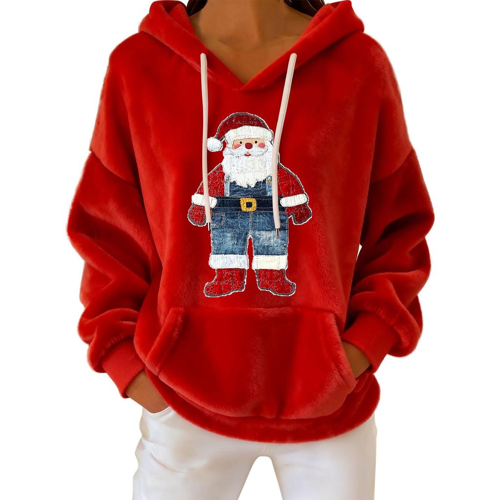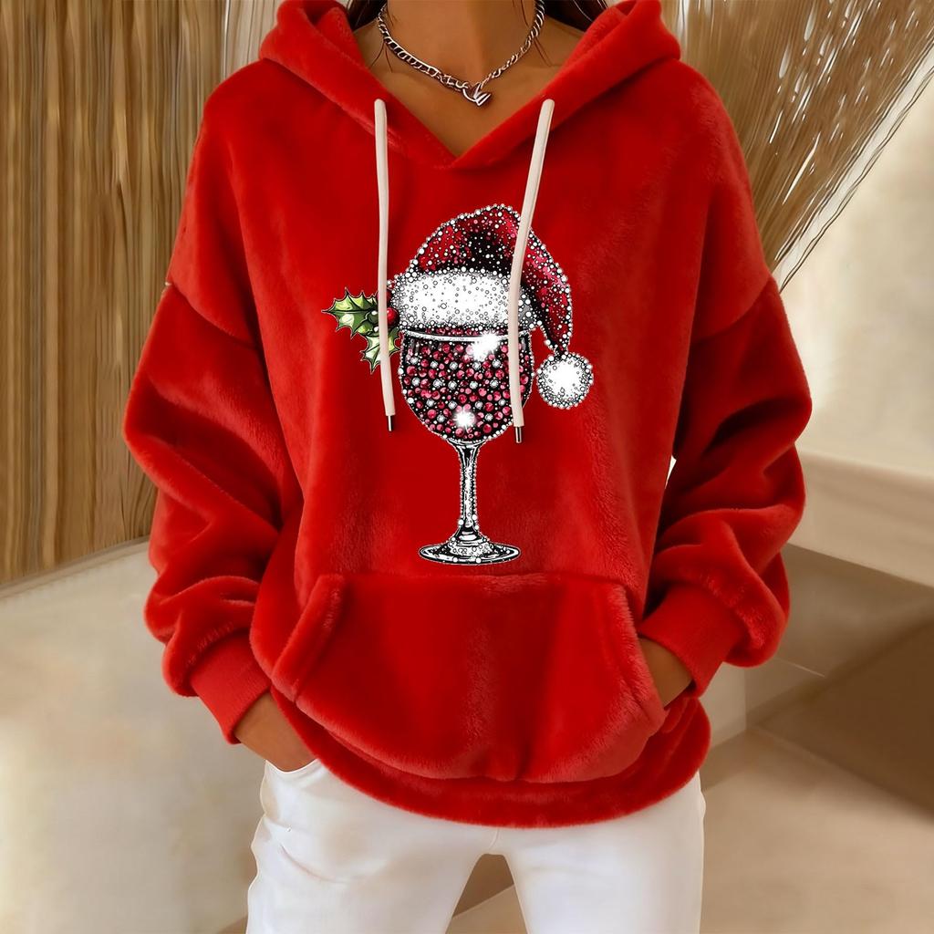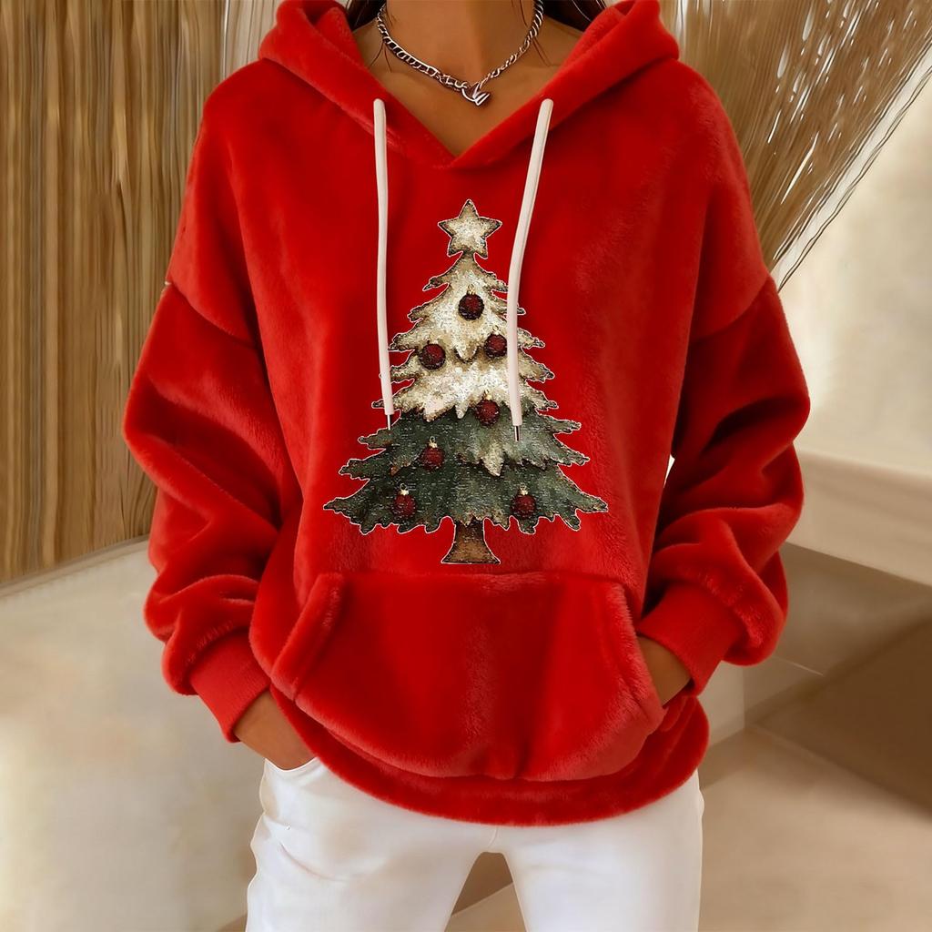 Женское свободное и удобное худи с V-образным вырезом на кулиске и длинными рукавами с рождественским принтом