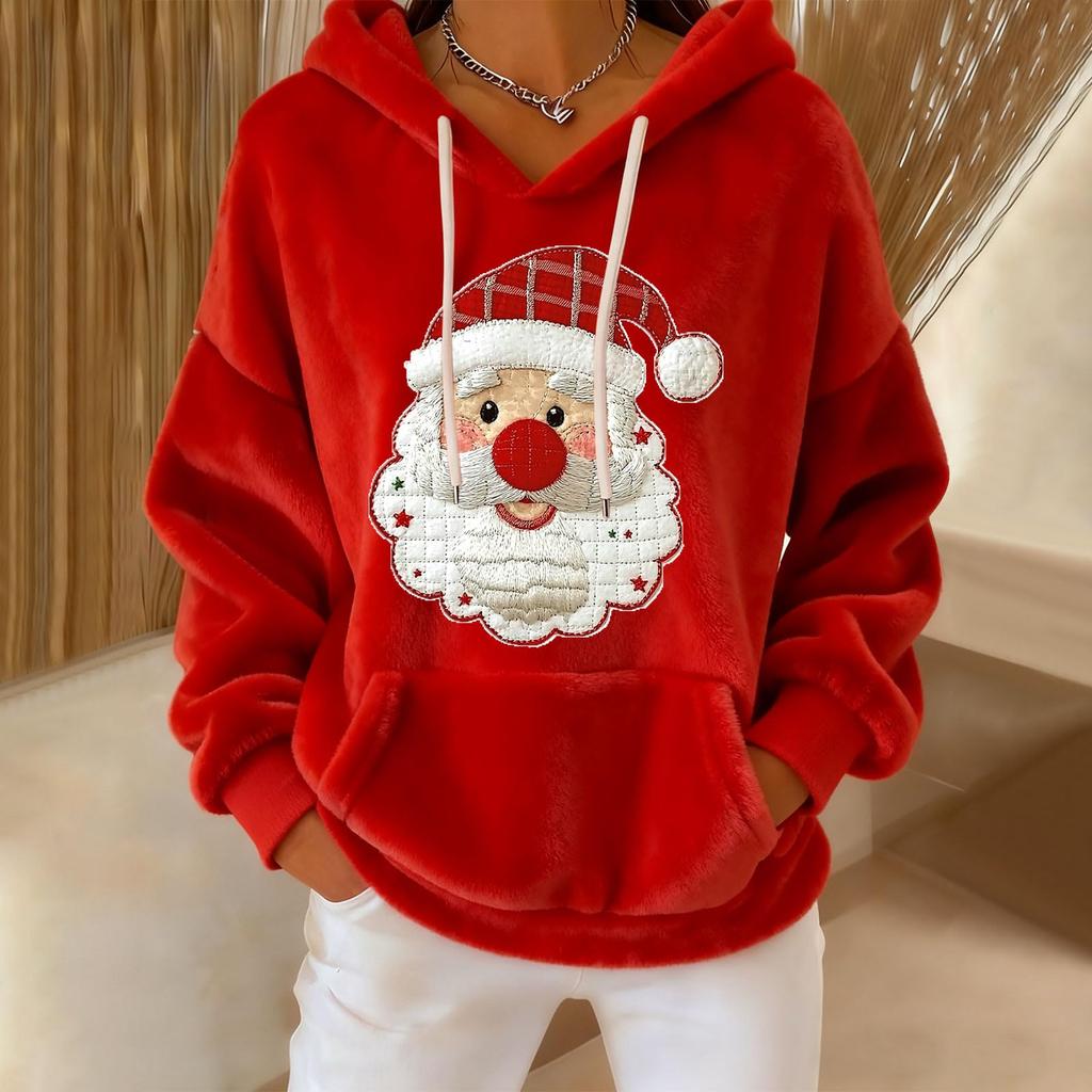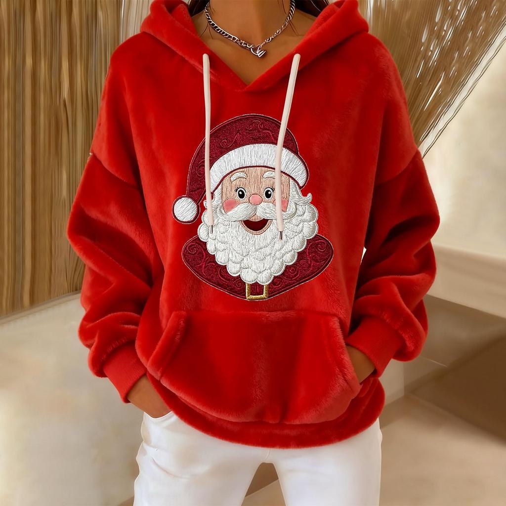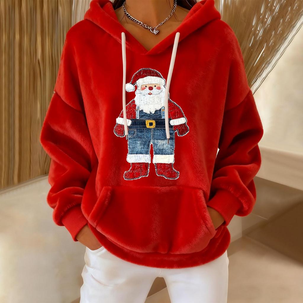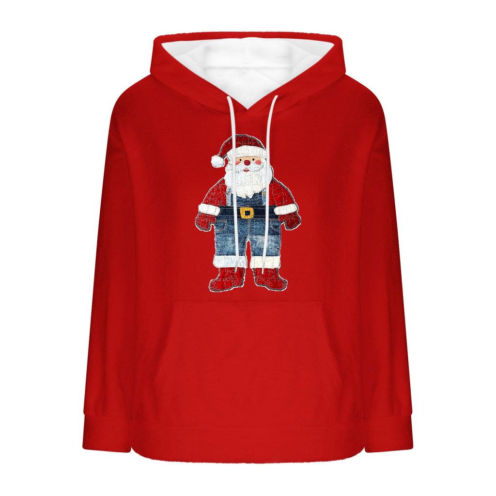 Женское свободное и удобное худи с V-образным вырезом на кулиске и длинными рукавами с рождественским принтом
