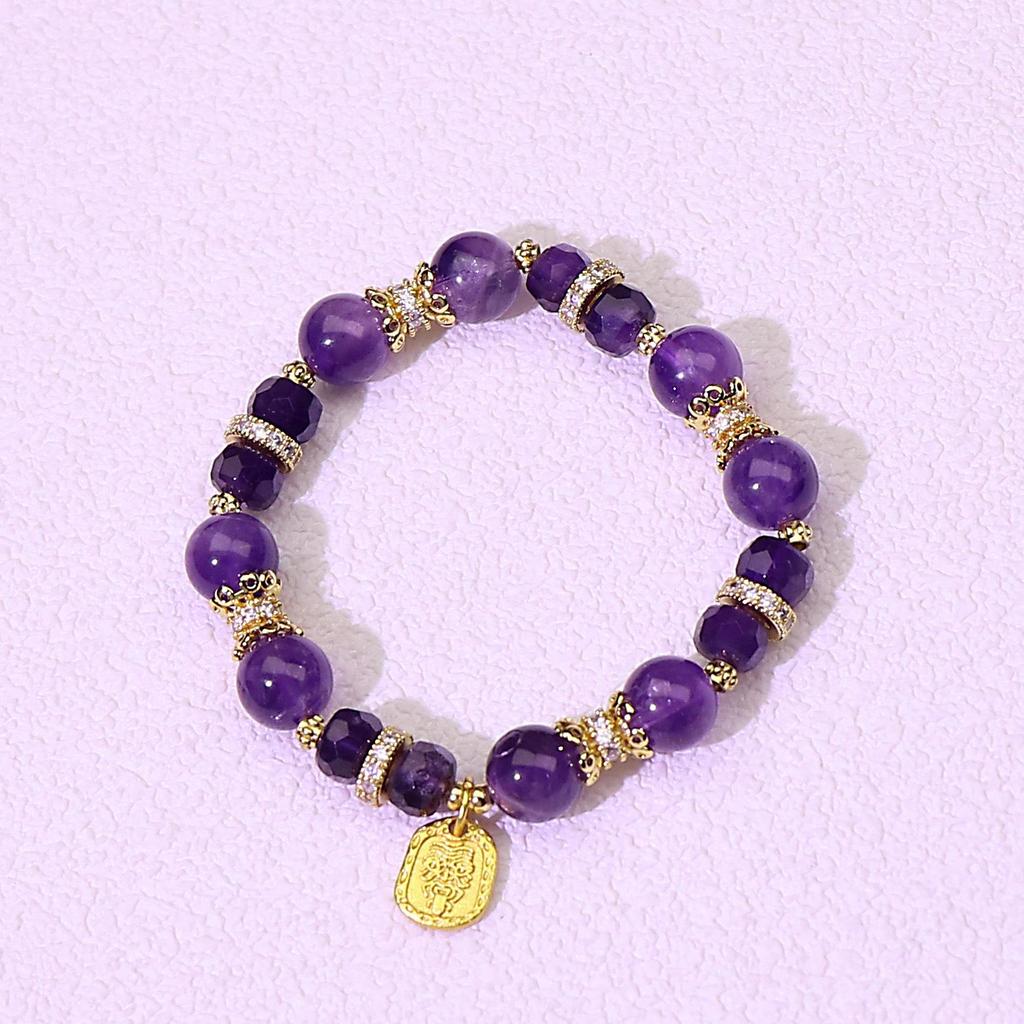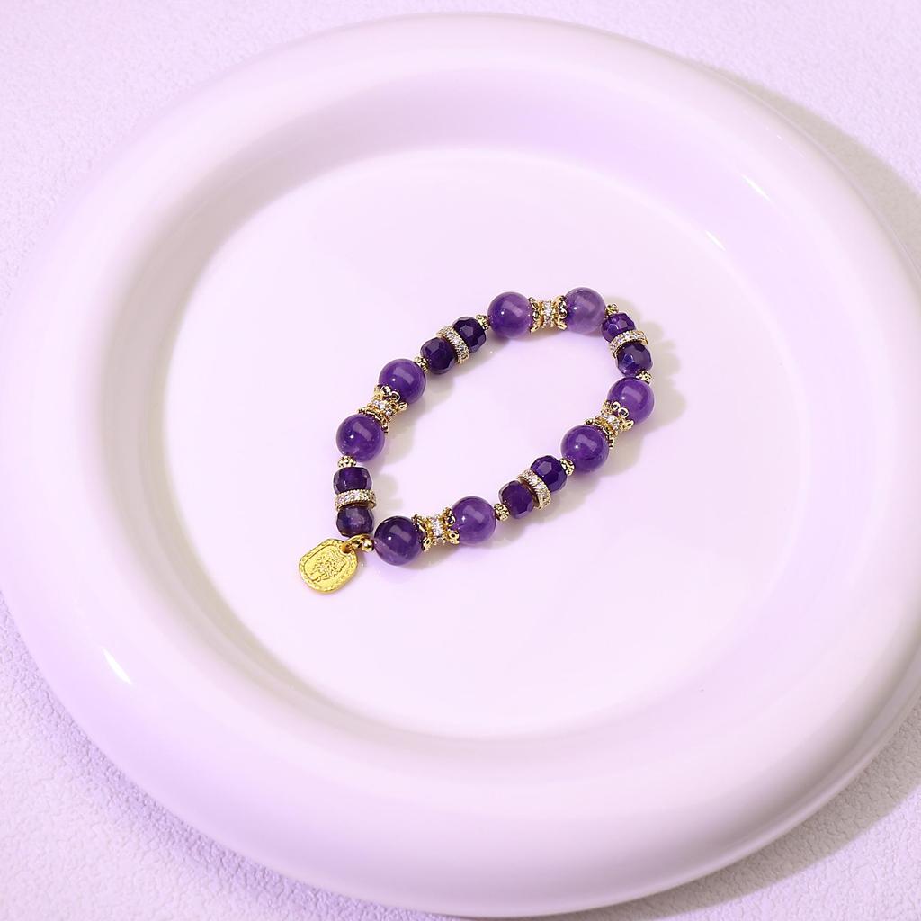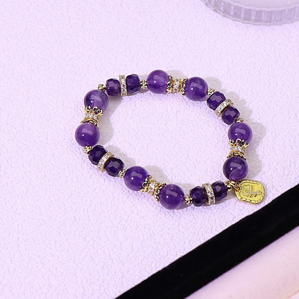 Женский браслет из натурального бразильского аметиста высокого класса - Невыцветающая роскошная бижутерия из бусин, Идеальный подарок на день рождения