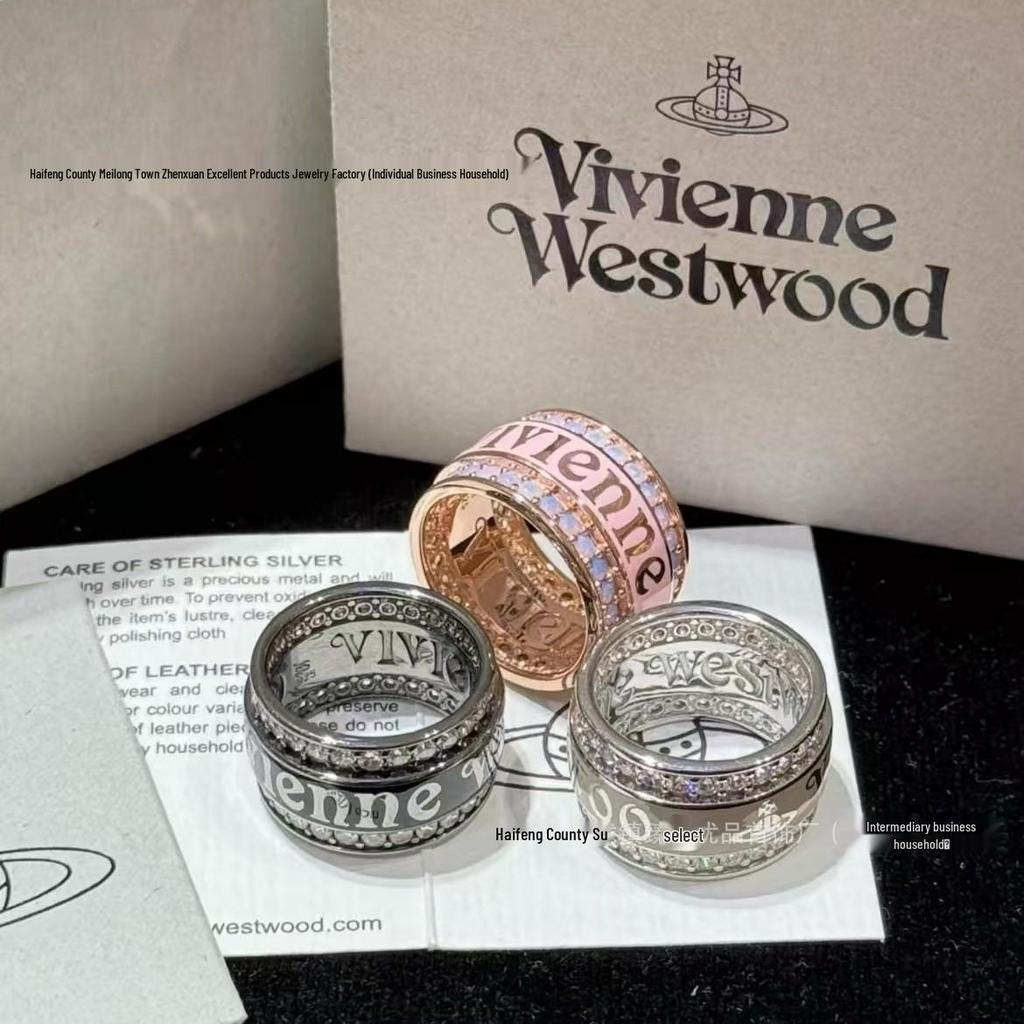 Двухслойное кольцо Vivienne Westwood с инкрустацией фианитами и бриллиантовым логотипом - Искрящиеся благородные кольца для пары
