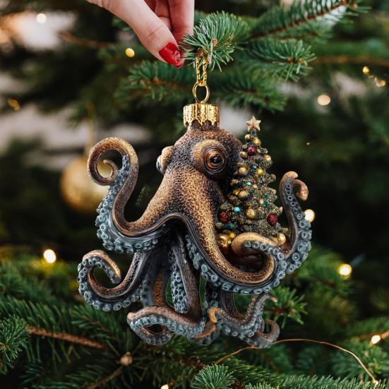 Добавьте нотку причудливого очарования в ваш праздничный декор с нашей уникальной коллекцией елочных игрушек-осьминогов. Каждое украшение имеет восхитительный дизайн, рассказывающий рождественскую историю, вдохновленную чудесами моря.. Нарисованные вручную и расписанные индивидуально, эти украшения демонстрируют яркие цвета и сверкающие блики для реалистичной текстуры и блестящего праздничного сияния.