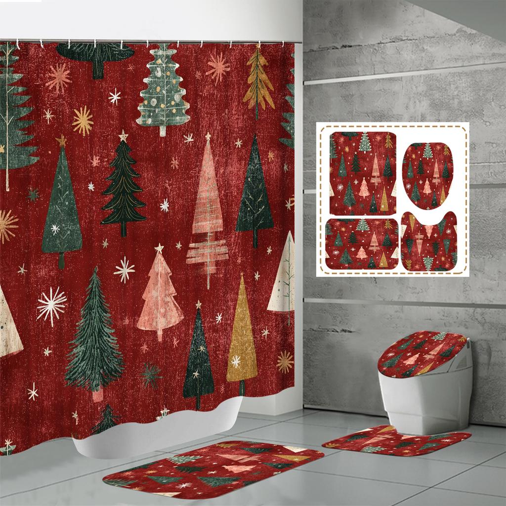 4 ШТ. Наборы штор для душа со шторкой для душа и ковриками, коврик для крышки унитаза, U-образный коврик и коврик для ванной, набор для ванной комнаты с 12 крючками