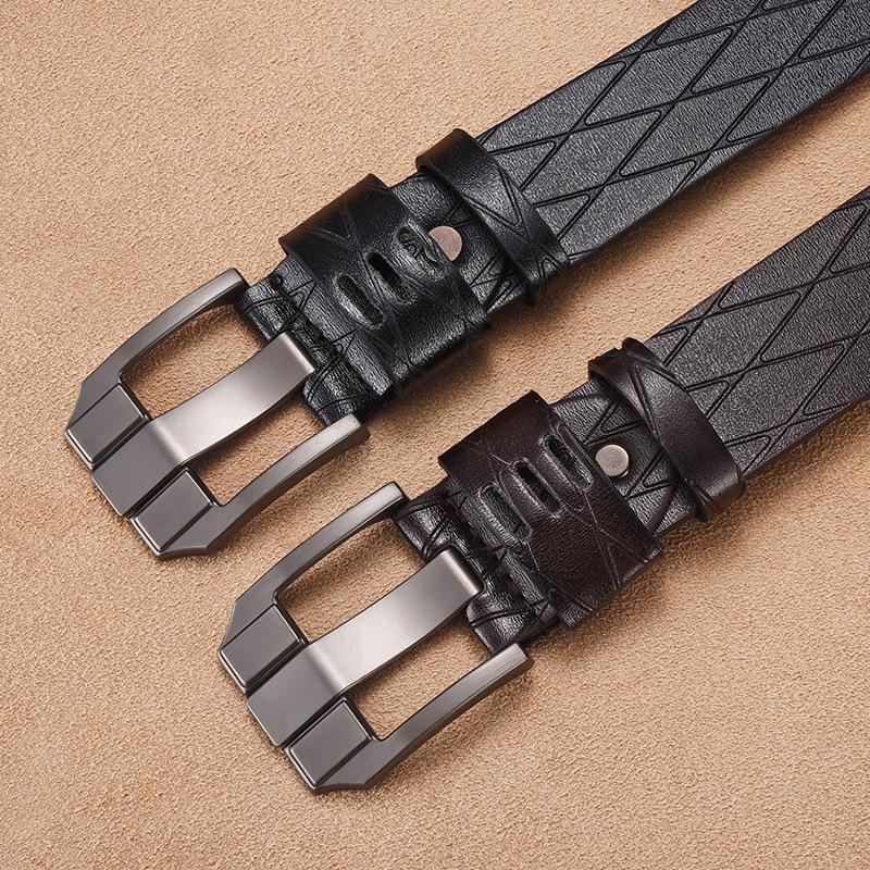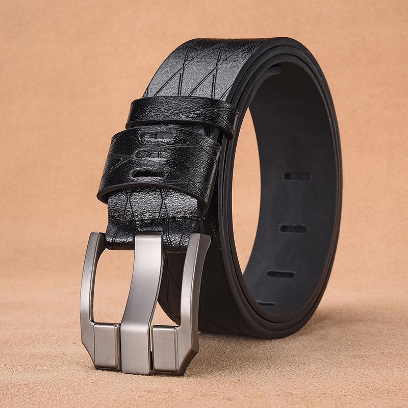 Мужской ремень премиум-класса из винтажной кожи с широкой пряжкой-штифтом из сплава - Модный деловой пояс
