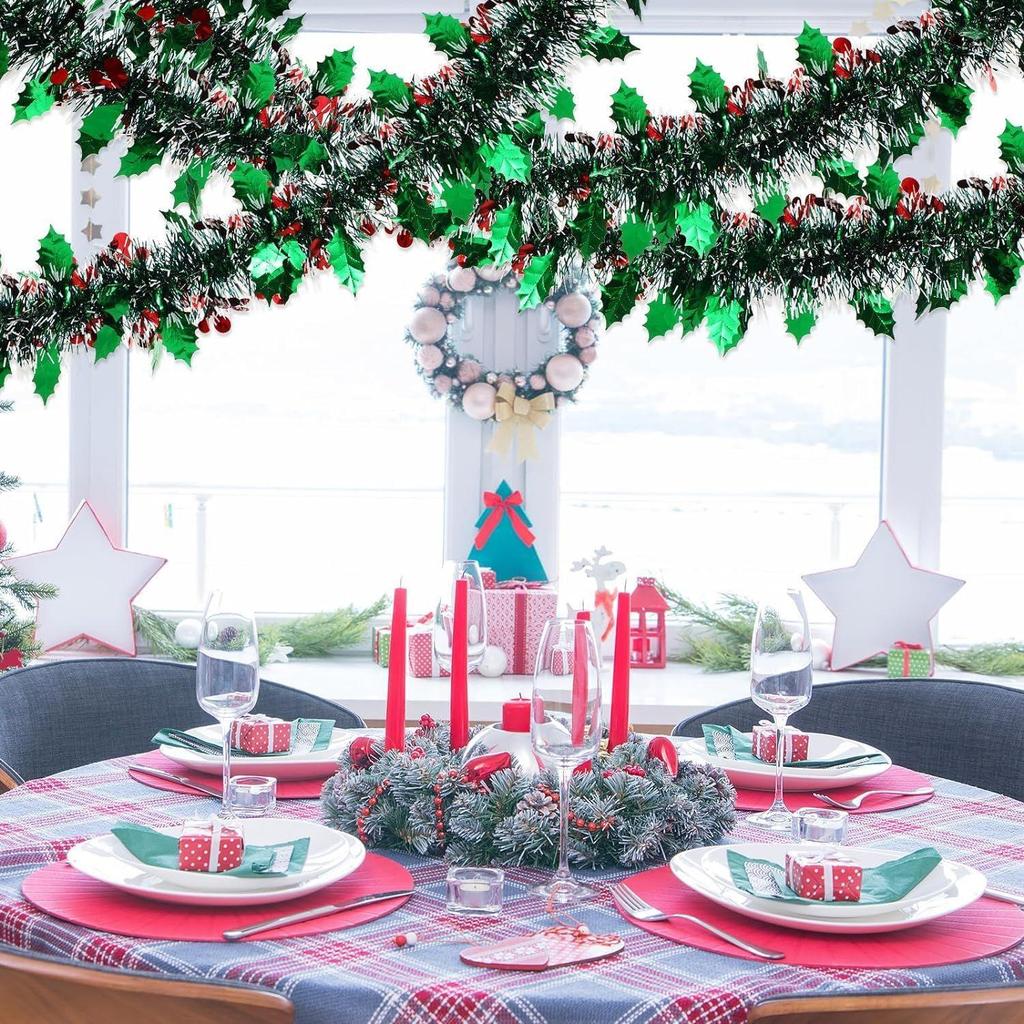 2 шт. Искусственные гирлянды из тяжелой мишуры с красными ягодами для Рождества, гирлянды, ленты для Нового года, Рождества и украшения елки 6 футов