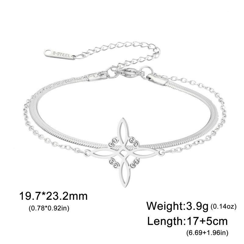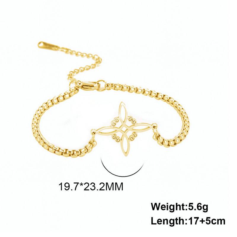 Браслет из нержавеющей стали с золотым покрытием, двойной, с узлом ведьмы