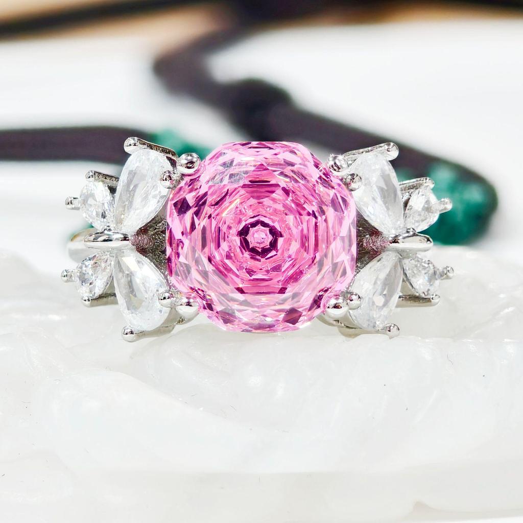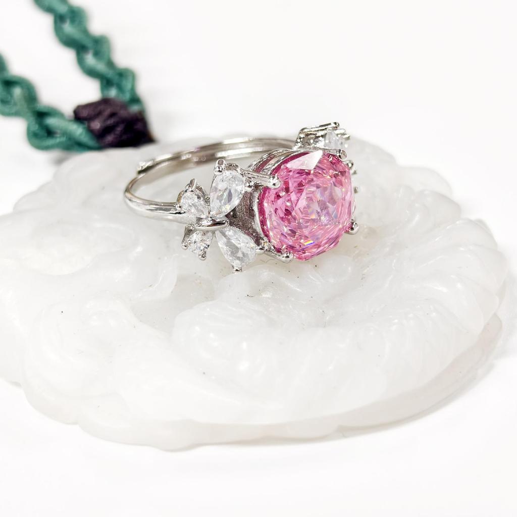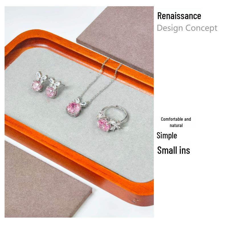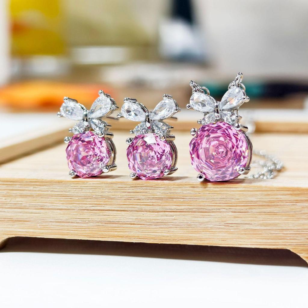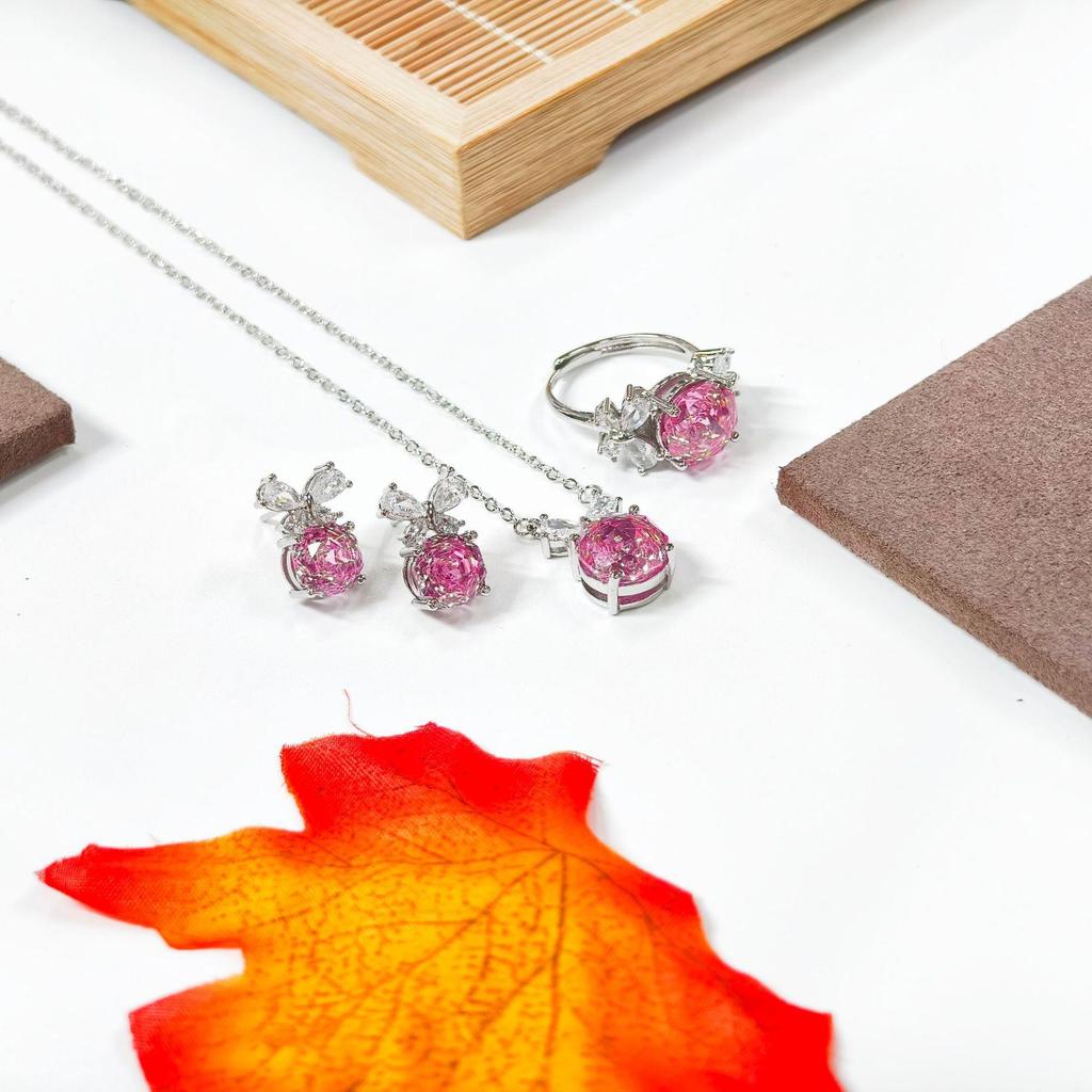 Ювелирный набор «Розовые бабочки сакуры»: Цирконовое кольцо, серьги и подвеска