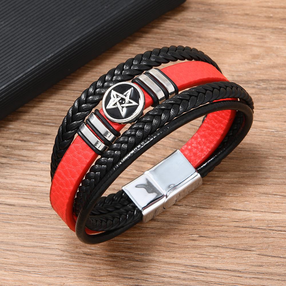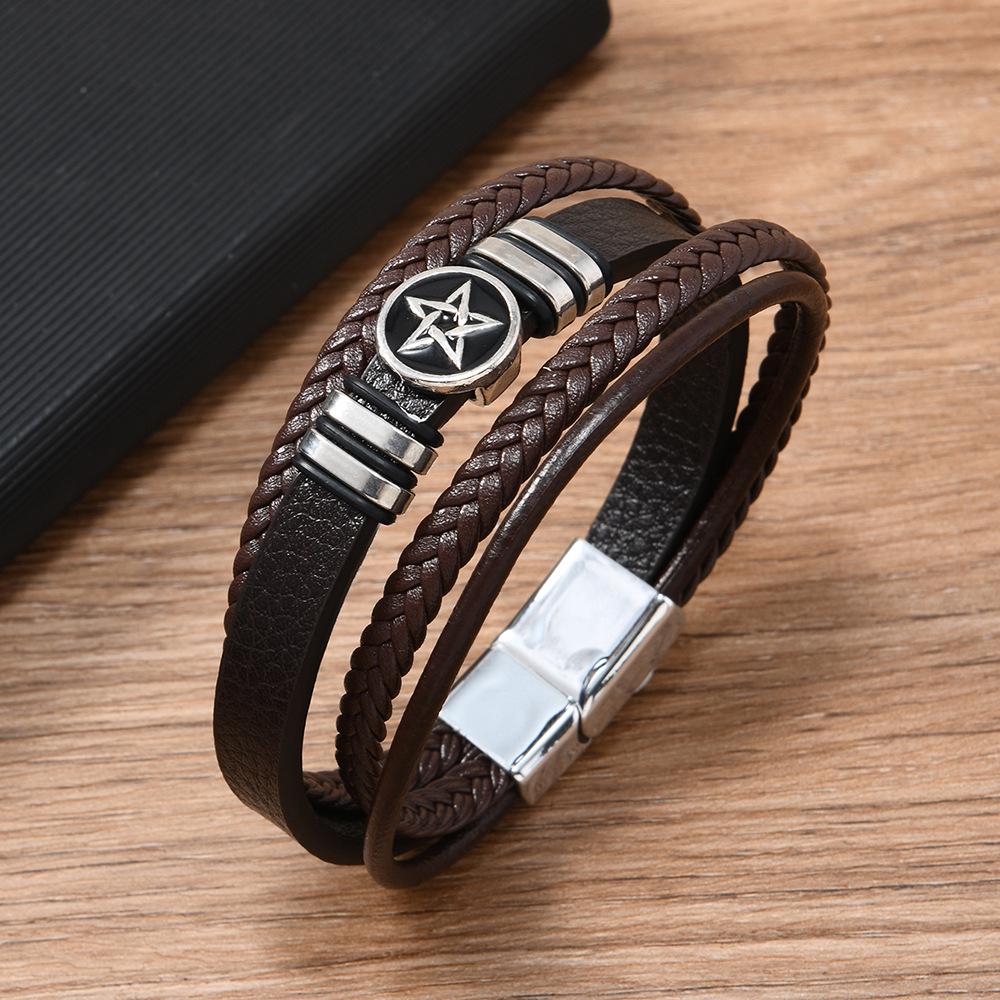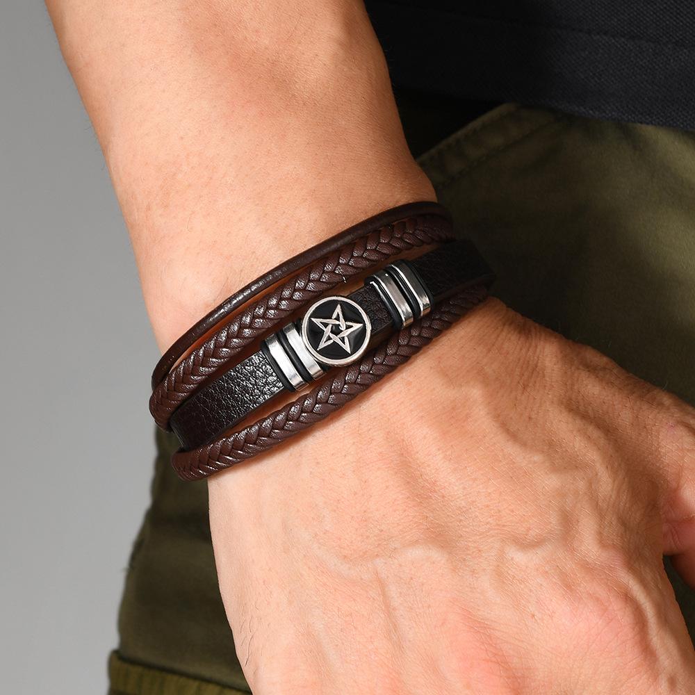 Ретро многослойный плетеный мужской браслет с пентаграммой