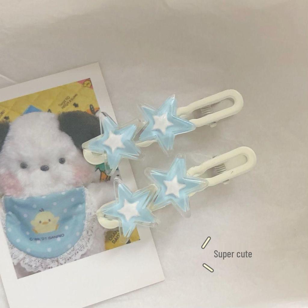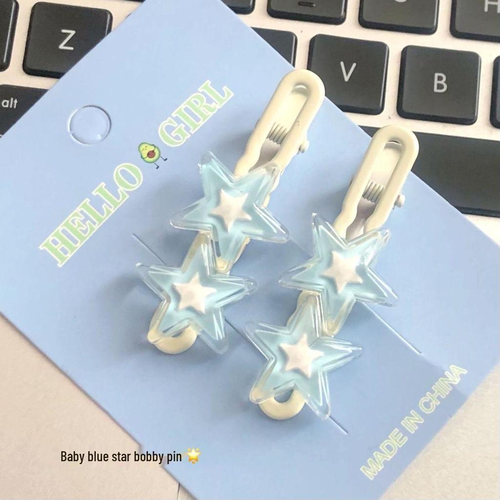 Синяя заколка для волос с волнистым краем: Пятиконечный, Дизайн Сладкое Сердце, Милый Мягкий Девичий Аксессуар