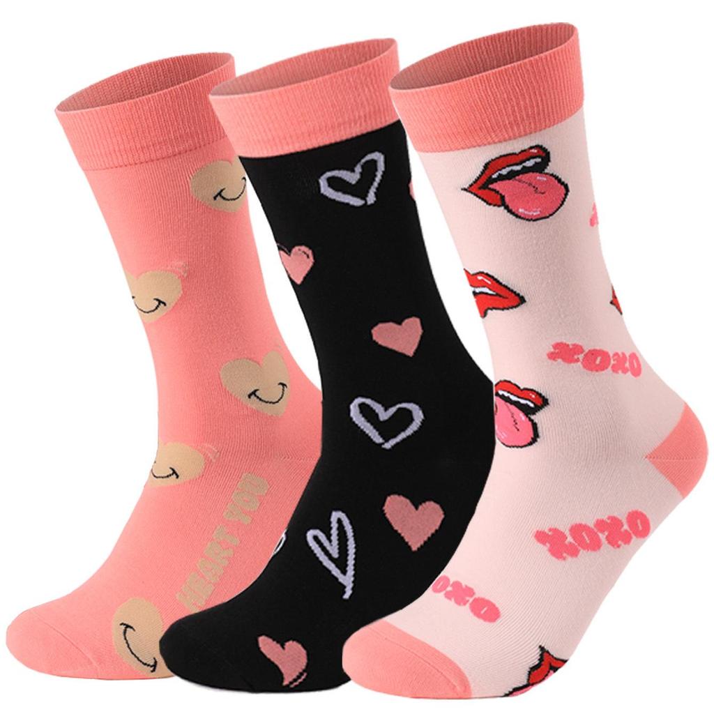 Новая серия ко Дню святого Валентина: Хлопковые носки средней длины - Впитывающие пот и устойчивые к запаху, Один размер, Унисекс.
