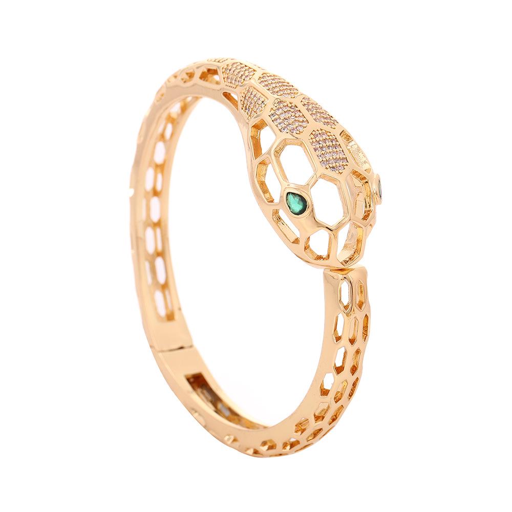 Не тускнеющий изумрудный браслет-манжета в виде змеи для женщин - Регулируемый открытый дизайн, холодный стиль