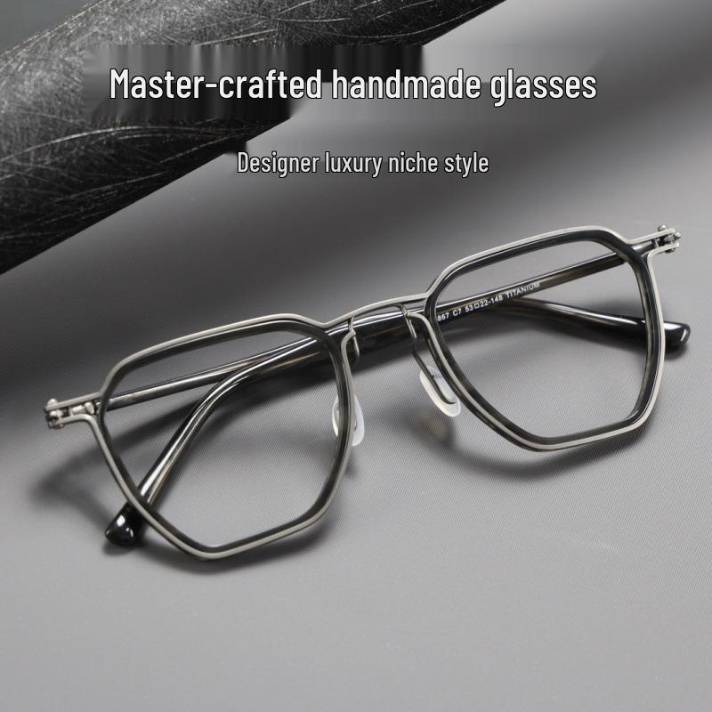 Мужская ретро оправа для очков из чистого титана 160 мм для широких лиц - Совместима с рецептурными линзами — купить товар онлайн с бесплатной доставкой по всему миру!