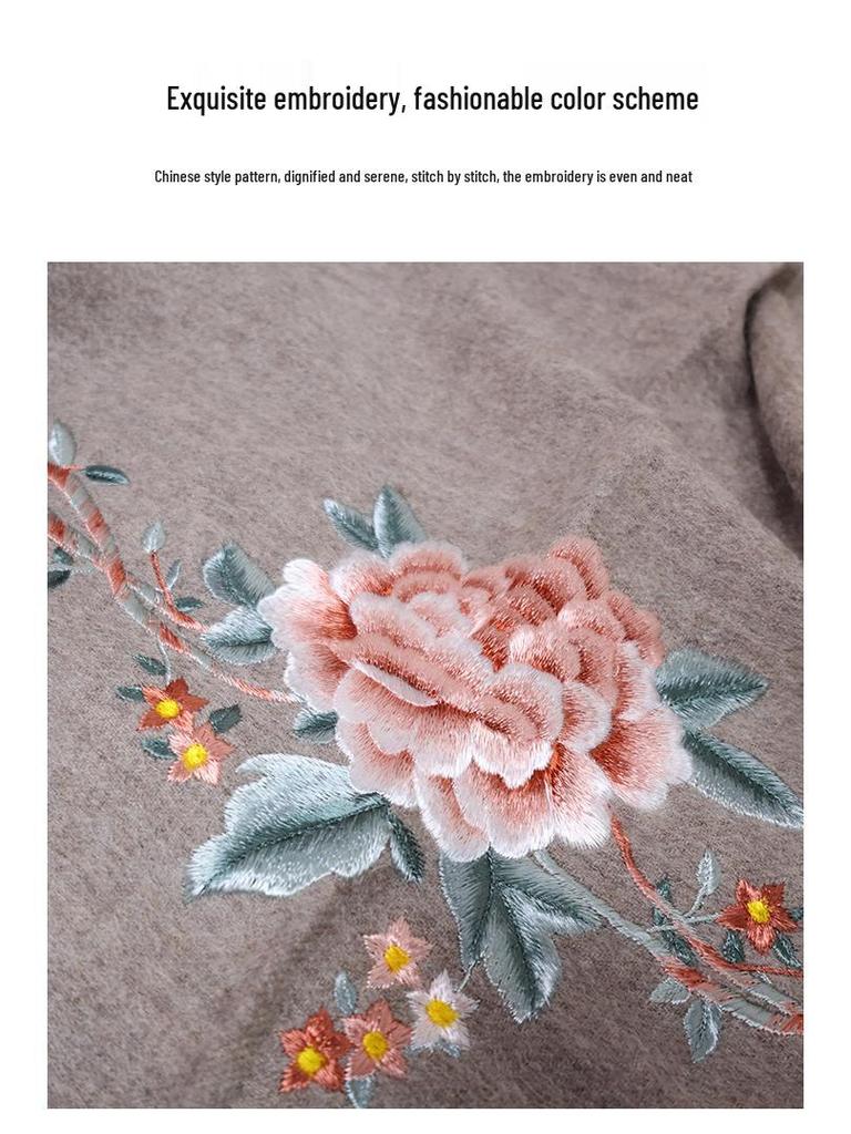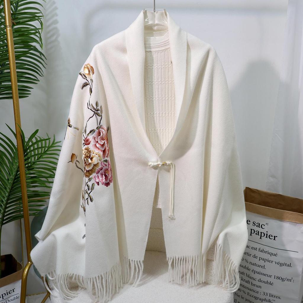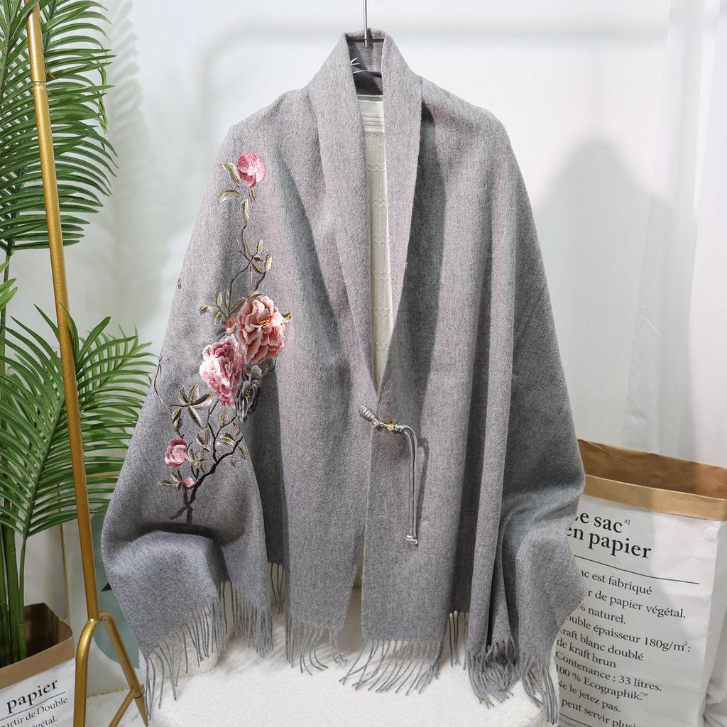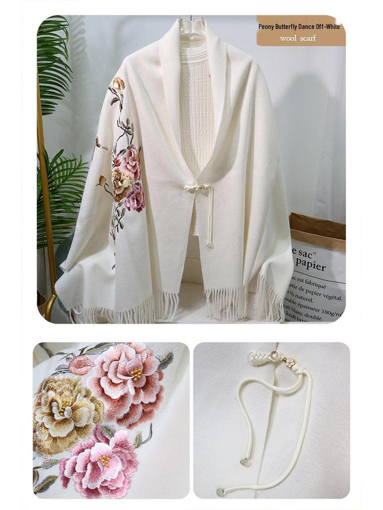 Вышитый шерстяной шарф в китайском стиле – Элегантная женская зимняя шаль, Двусторонний, Теплый модный аксессуар