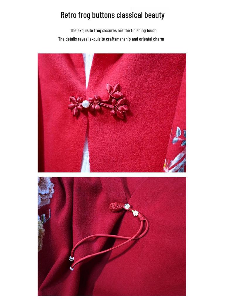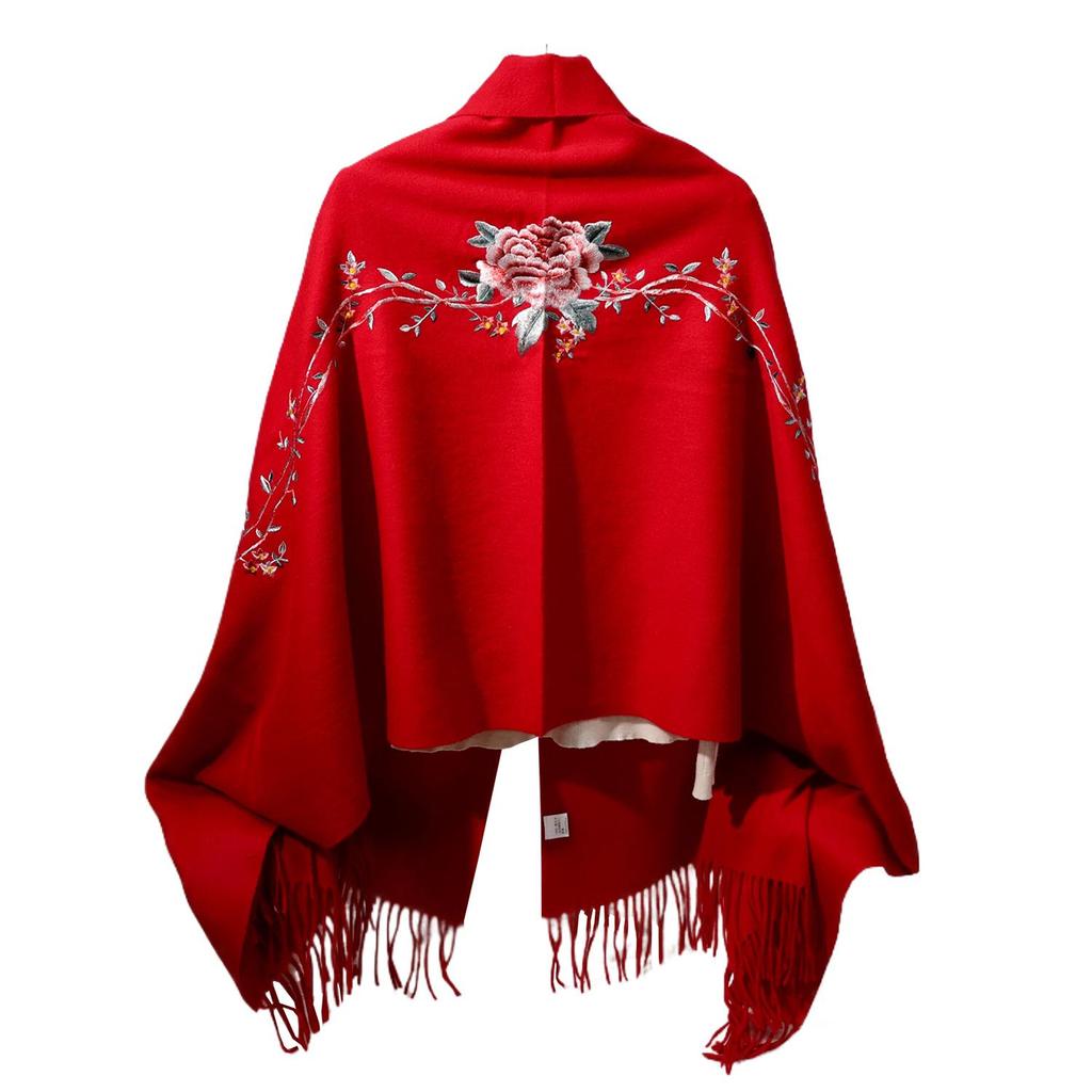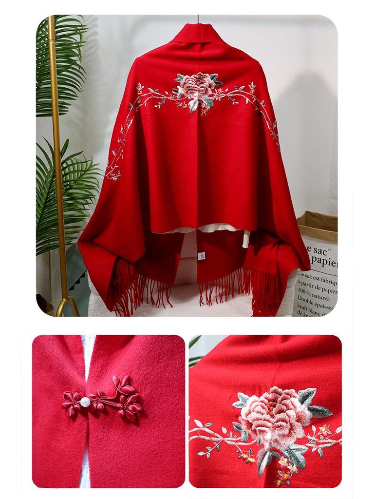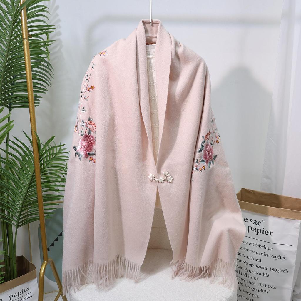Вышитый шерстяной шарф в китайском стиле – Элегантная женская зимняя шаль, Двусторонний, Теплый модный аксессуар