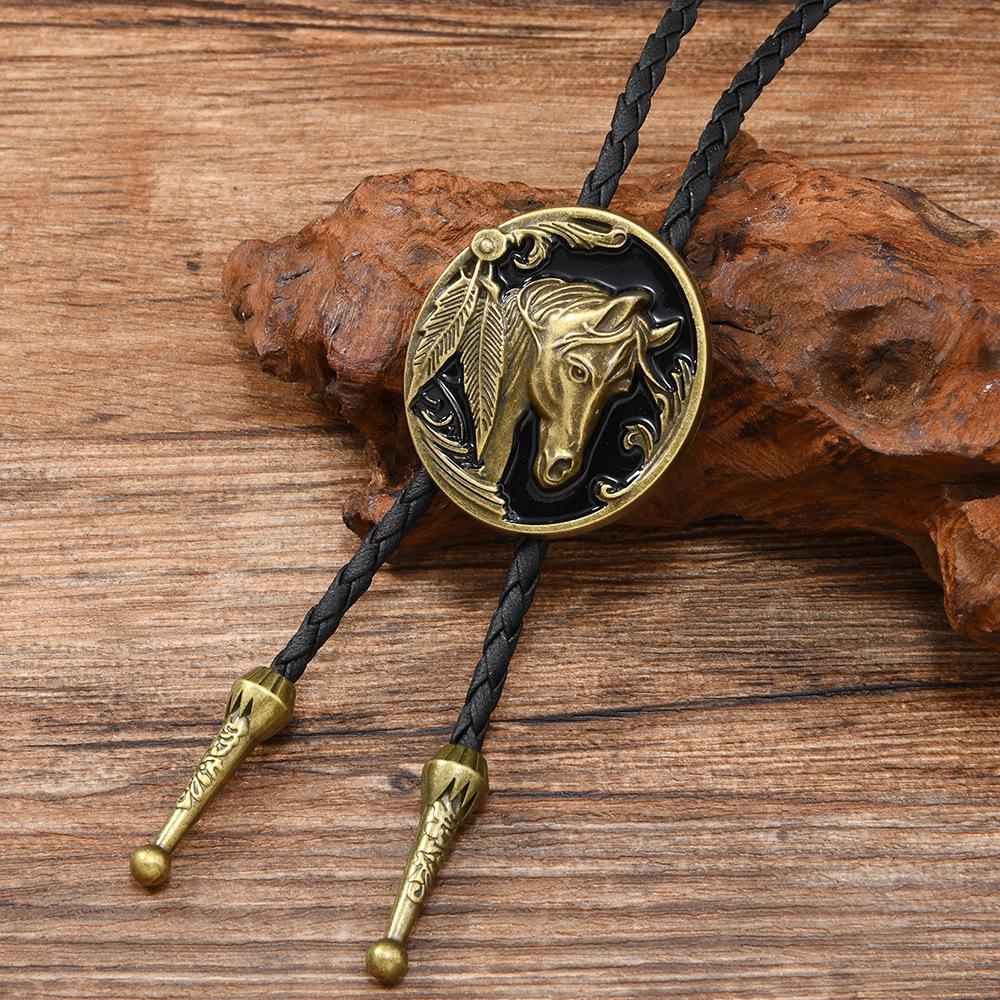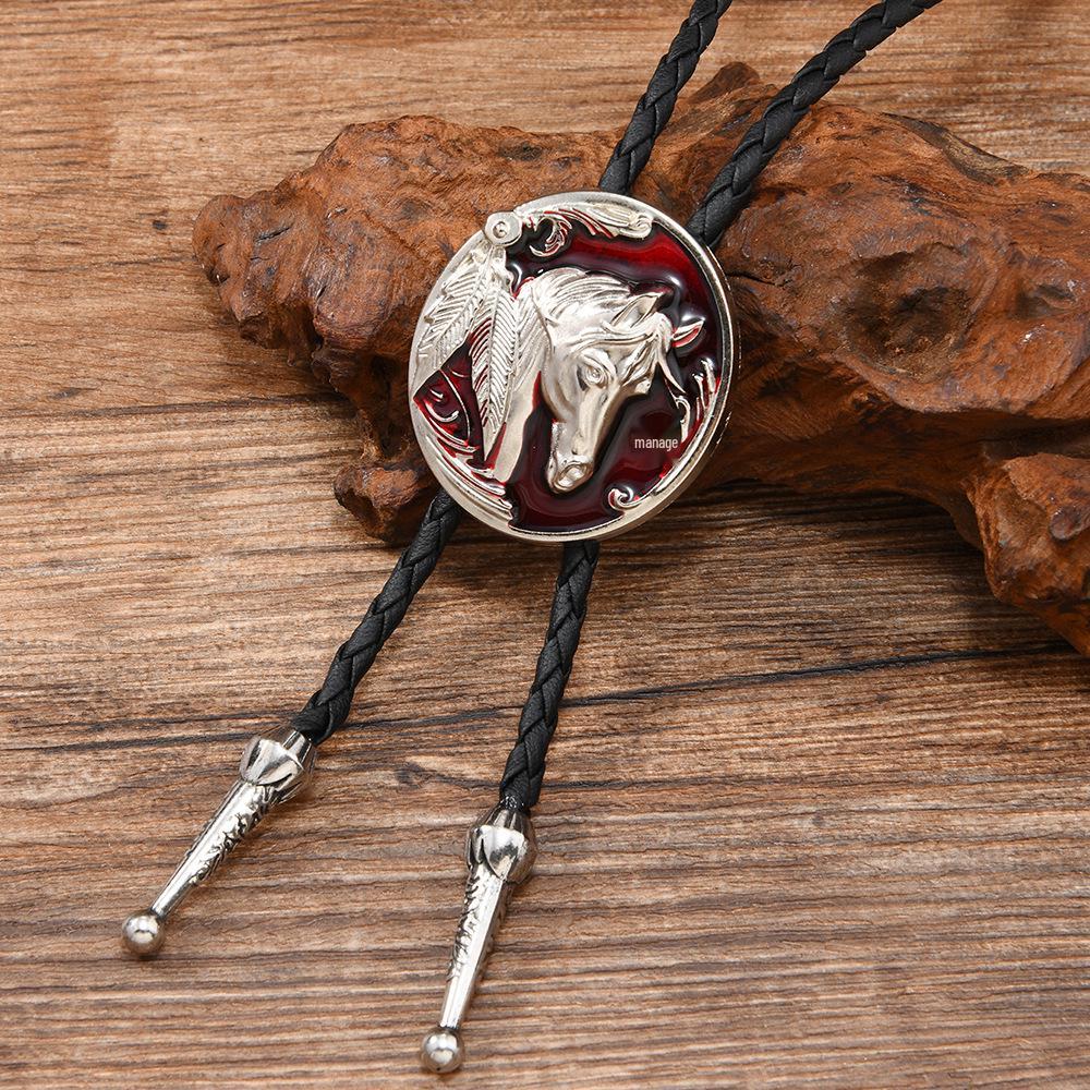 Европейско-американский стиль Кожаный шнурок Ожерелье с подвеской в виде лошадиной головы с эмалью, Ретро Боло-галстук, Цепочка для свитера - Унисекс дизайн