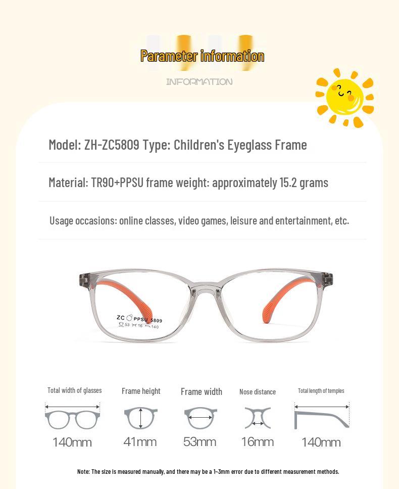 Стильная оправа для очков TR90 для детей - Легкая, удобная оправа из PPSU с силиконовыми носоупорами для студентов