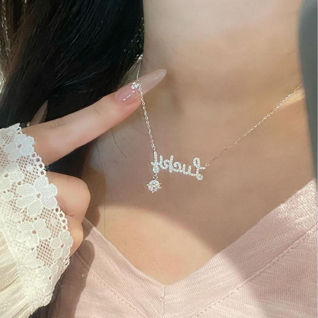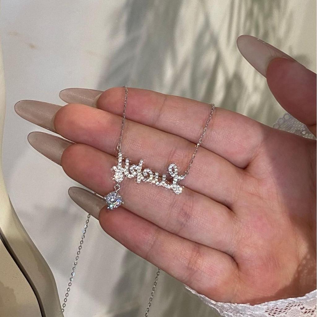 Элегантное колье из стерлингового серебра 925 пробы с полными муассанитовыми бриллиантами и дизайном с счастливой буквой