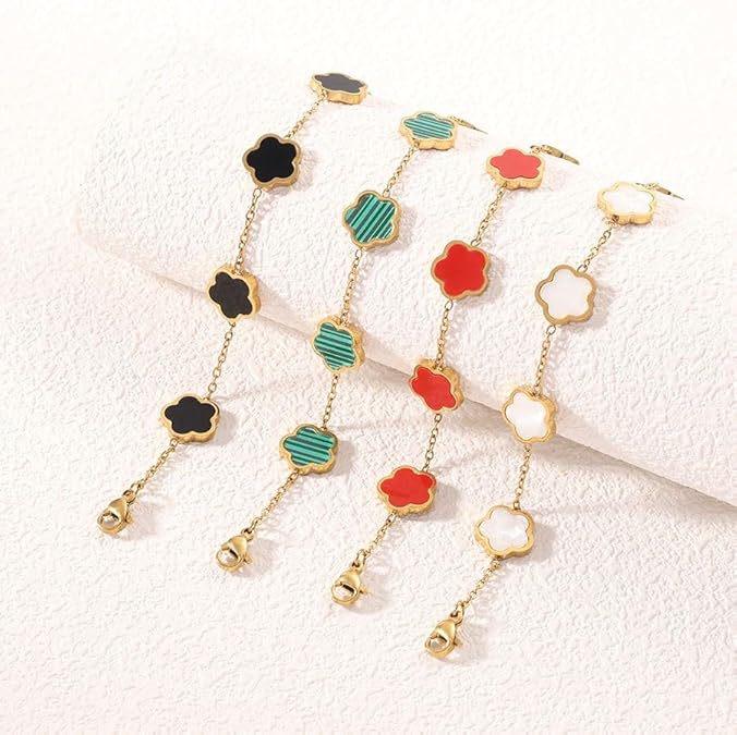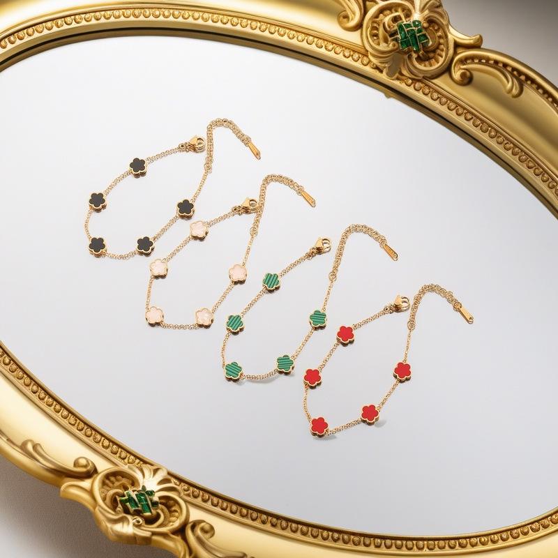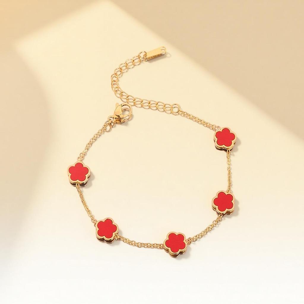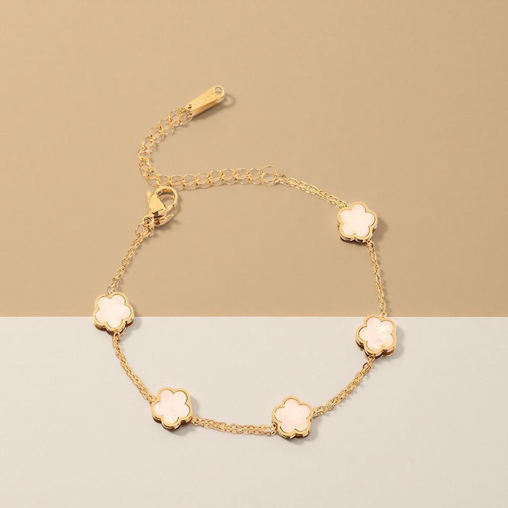 Браслет в корейском стиле 'Клевер с пятью лепестками': Титановая сталь с покрытием из 18-каратного золота с перламутром, женские украшения, устойчивые к выцветанию