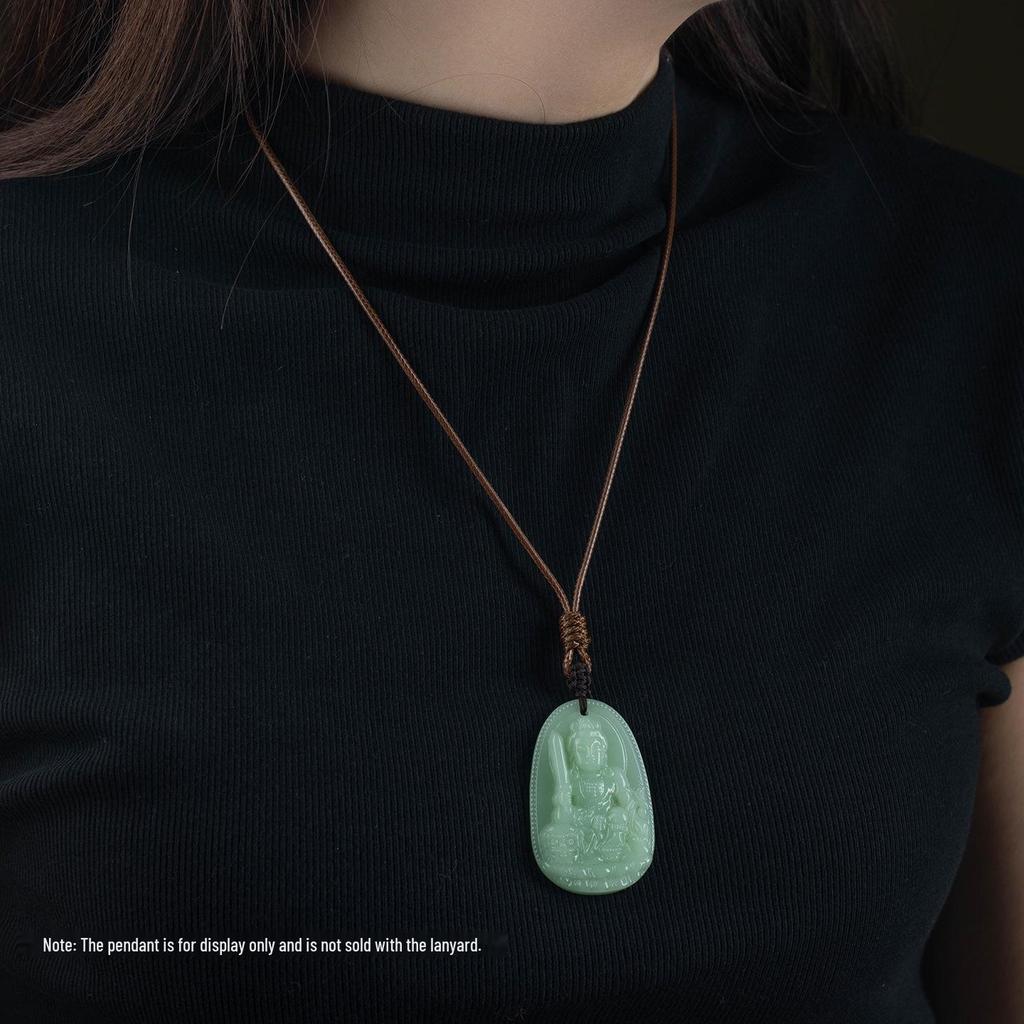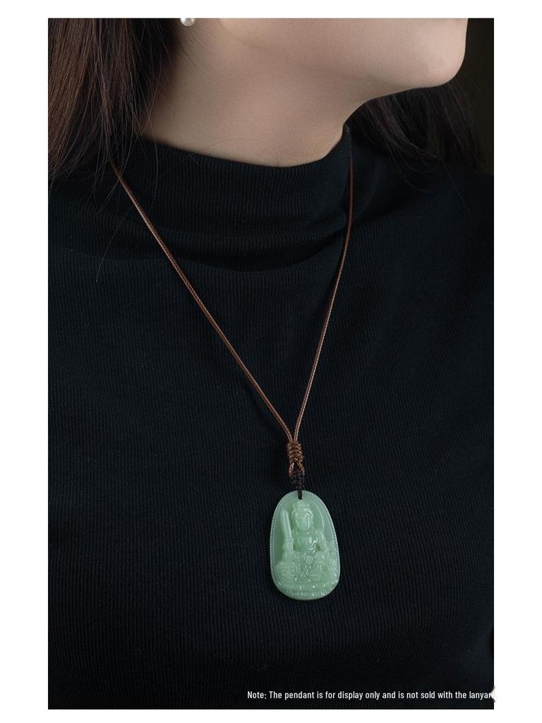 Высококачественное ожерелье с подвеской из нефрита из плетеной вручную вощеной кожи премиум-класса с безопасной застежкой
