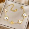 Браслет из титана с покрытием из 18-каратного золота 'Четырехлистный клевер' - Универсальный, не выцветающий, модный аксессуар класса люкс с перламутровыми акцентами — купить товар онлайн с бесплатной доставкой по всему миру!