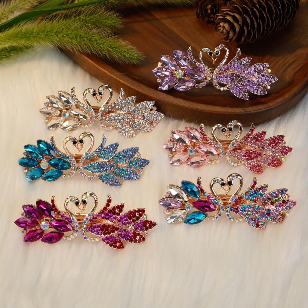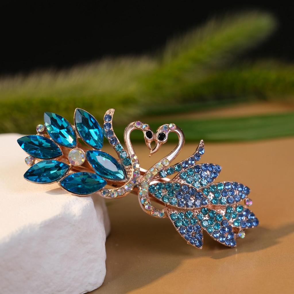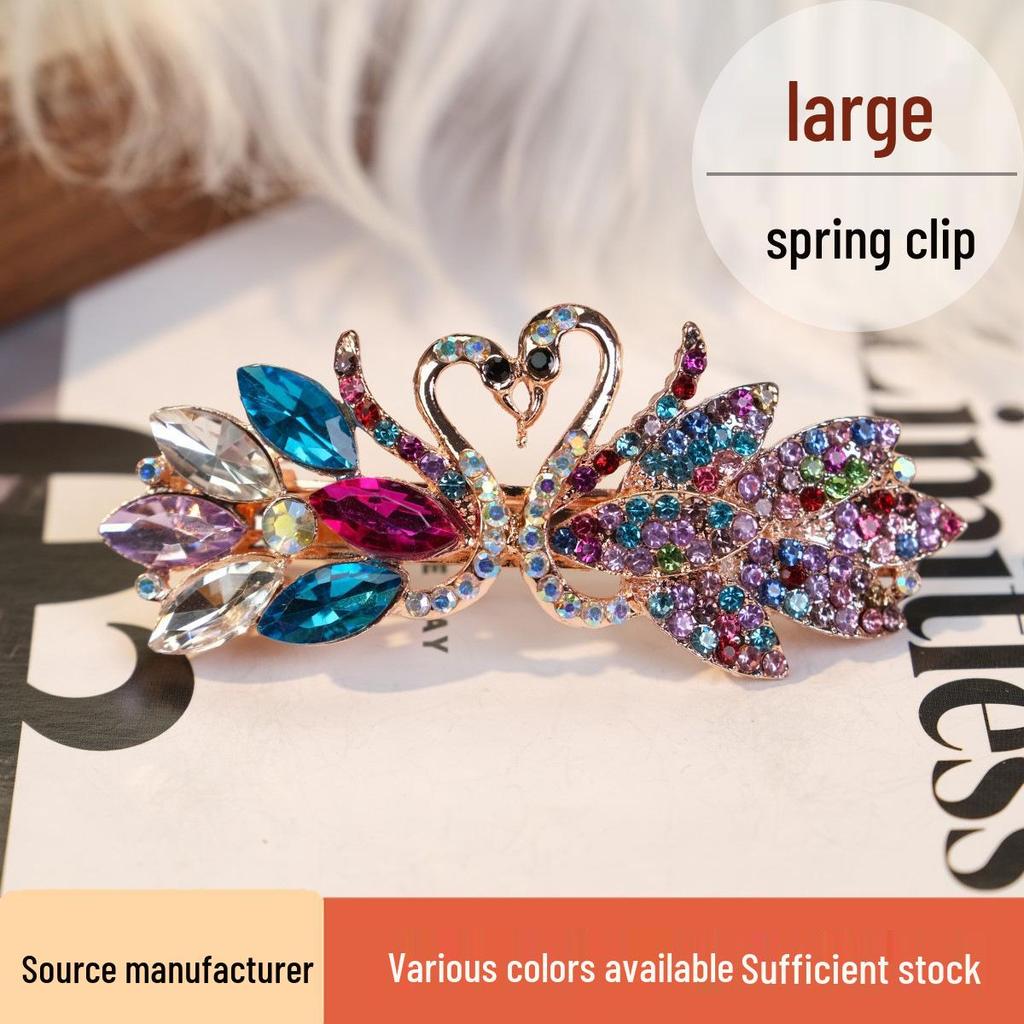 Заколка для волос из сплава со стразами в виде лебедя - Универсальная большая пружинная заколка для женских причесок