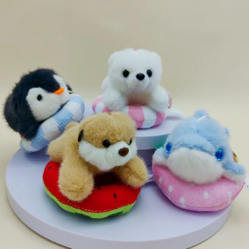 Креативный надувной круг для бассейна и набор милых брелоков с животными - Дельфин, Пингвин, Плюшевая кукла и подвеска для рюкзака в подарок