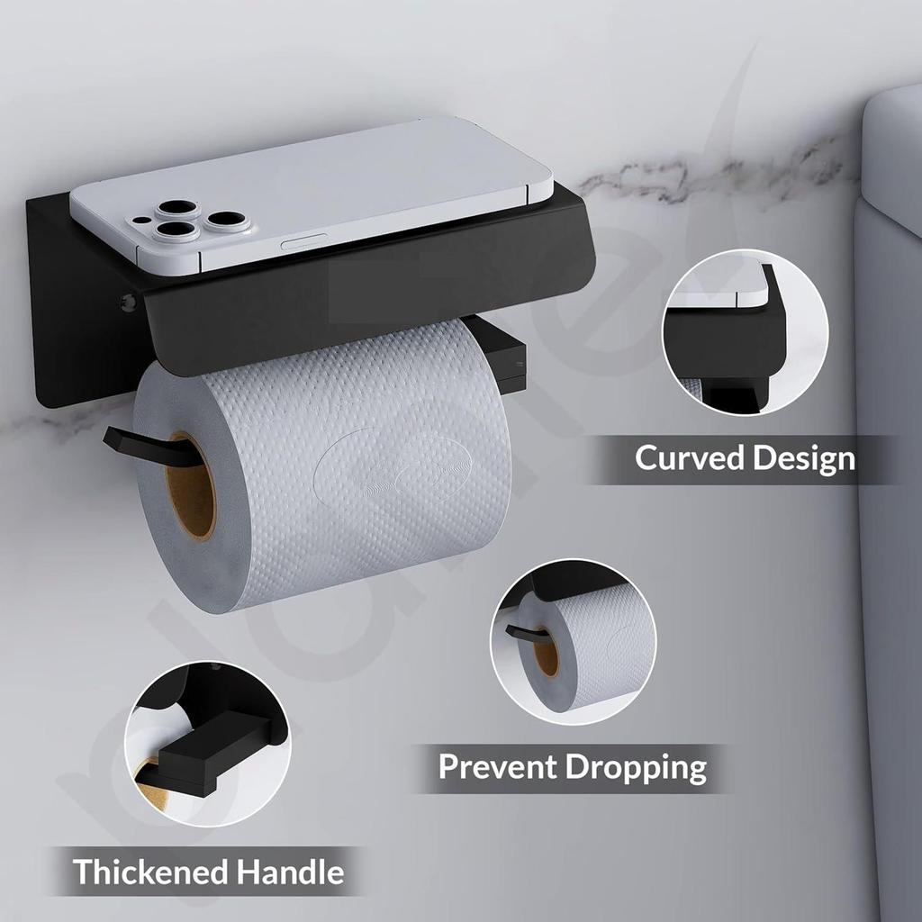 Платиновый держатель для туалетной бумаги из нержавеющей стали марки 304 с подставкой для мобильного телефона/держатель рулона туалетной бумаги для аксессуаров для ванной комнаты (Матовый черный)